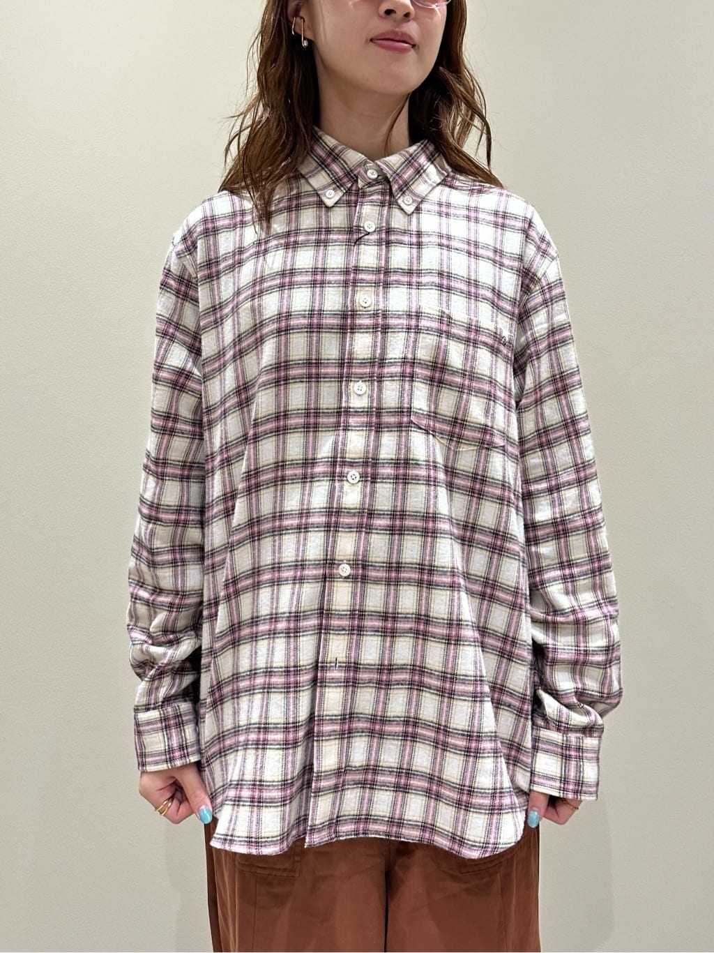 韓国ブランド《DUNST》のチェックシャツをゆるっと羽織ることで抜け感が◎