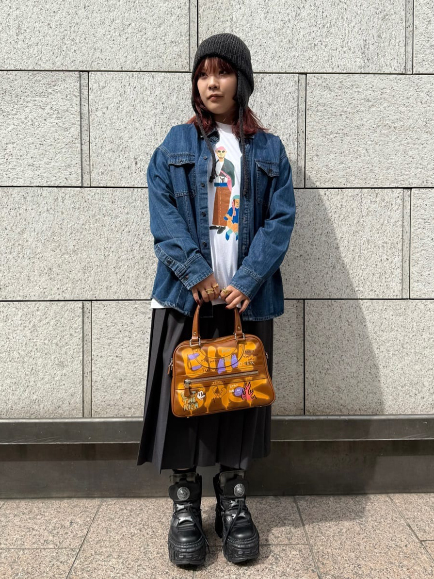全体的に秋を思わせるアースカラーでまとめたコーディネートです。