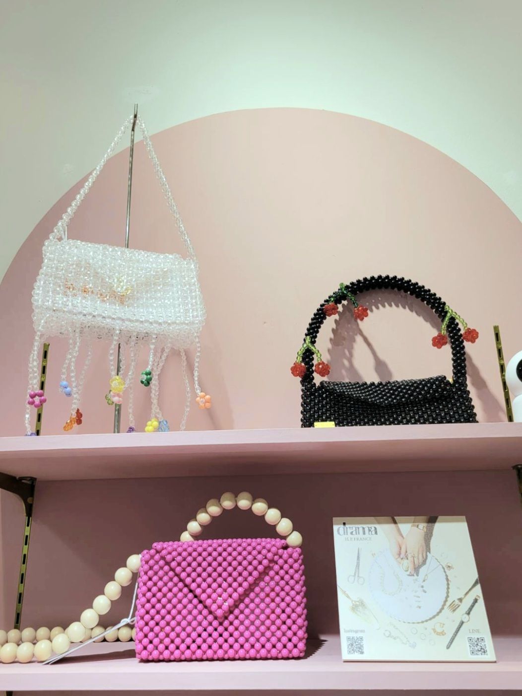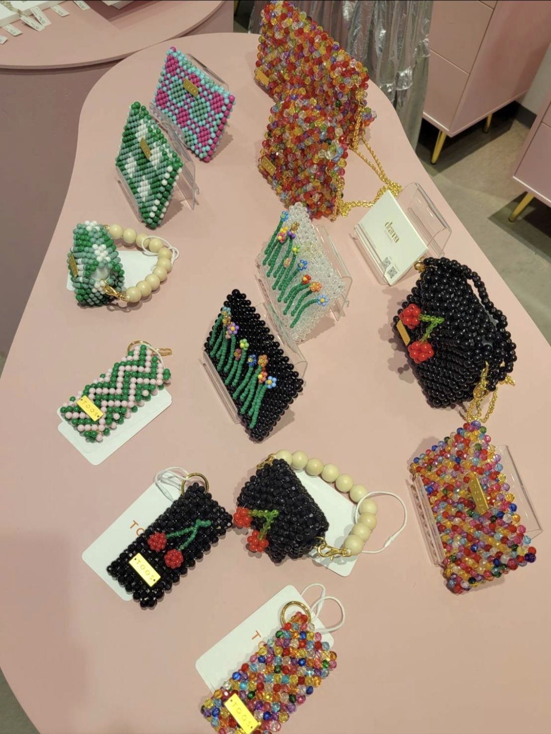 広島店ではジュエリーに加え、ライフスタイルに寄り添うアイテムも新たにラインナップ。その第一弾として、ビーズで編まれたバッグブランド 「TOOS」 が初登場しました。遊び心とクラフトマンシップを感じるデザインは、身につけるだけで心が弾むような存在感です。