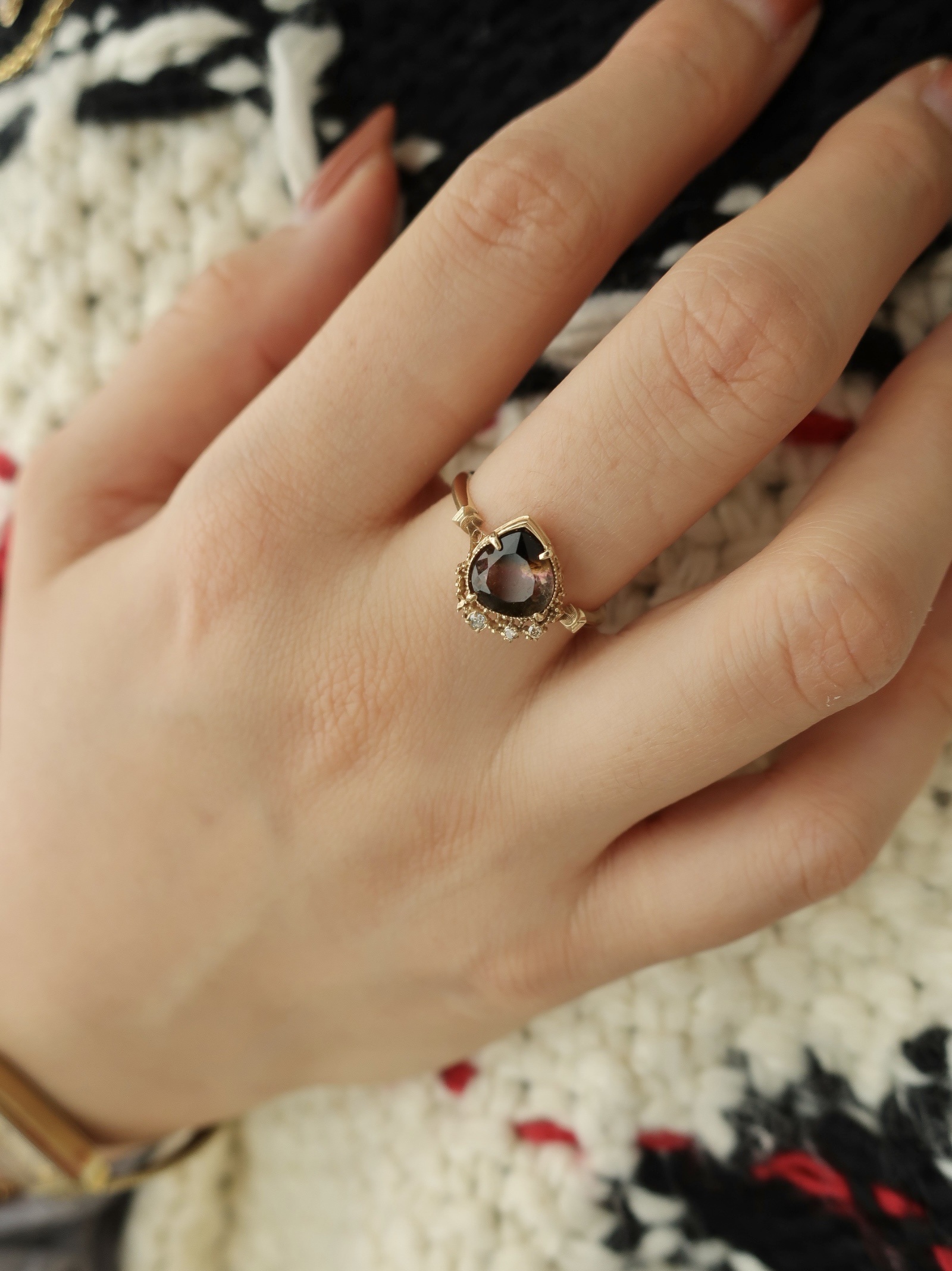 大ぶりですが、深い色合いの石なのでノーブルな印象です。