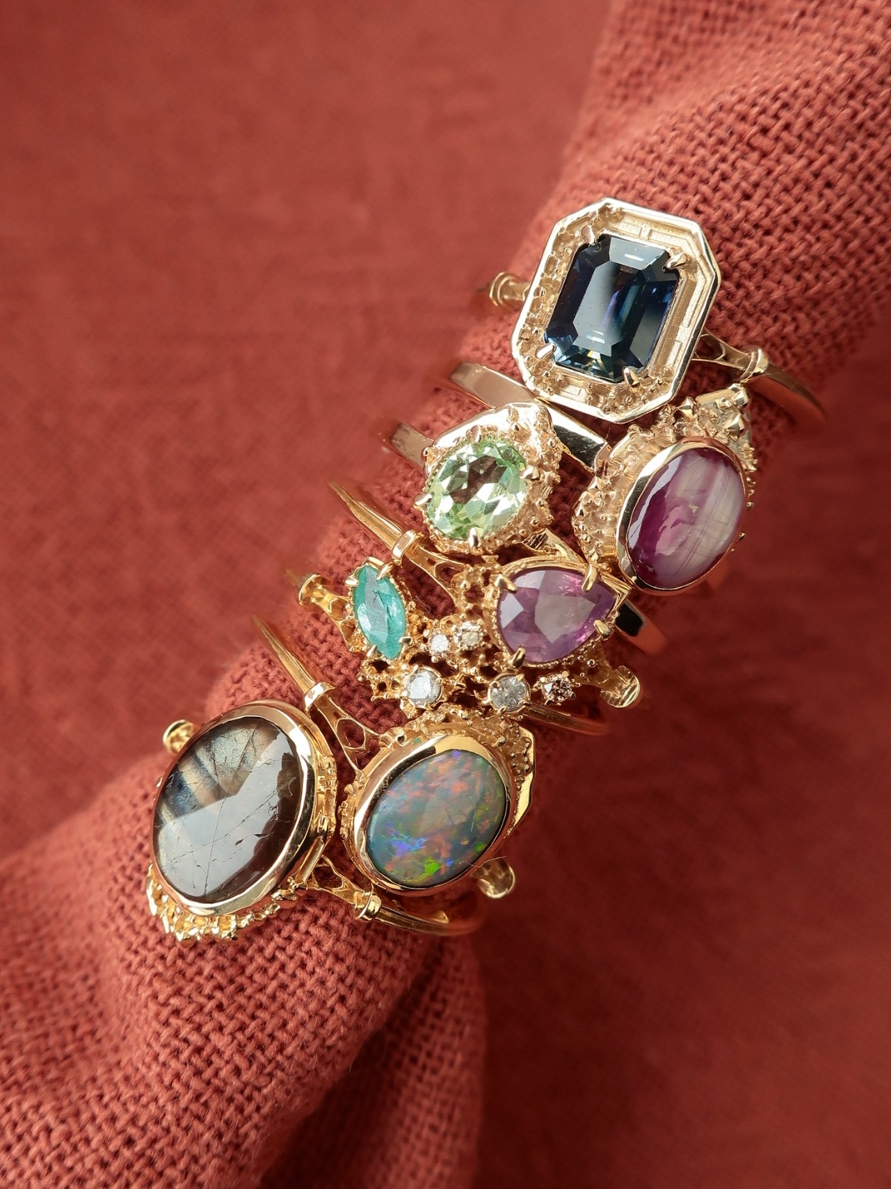 全ての石はそれぞれに合ったデザインがほどこされ、他にはない1点物となっております。