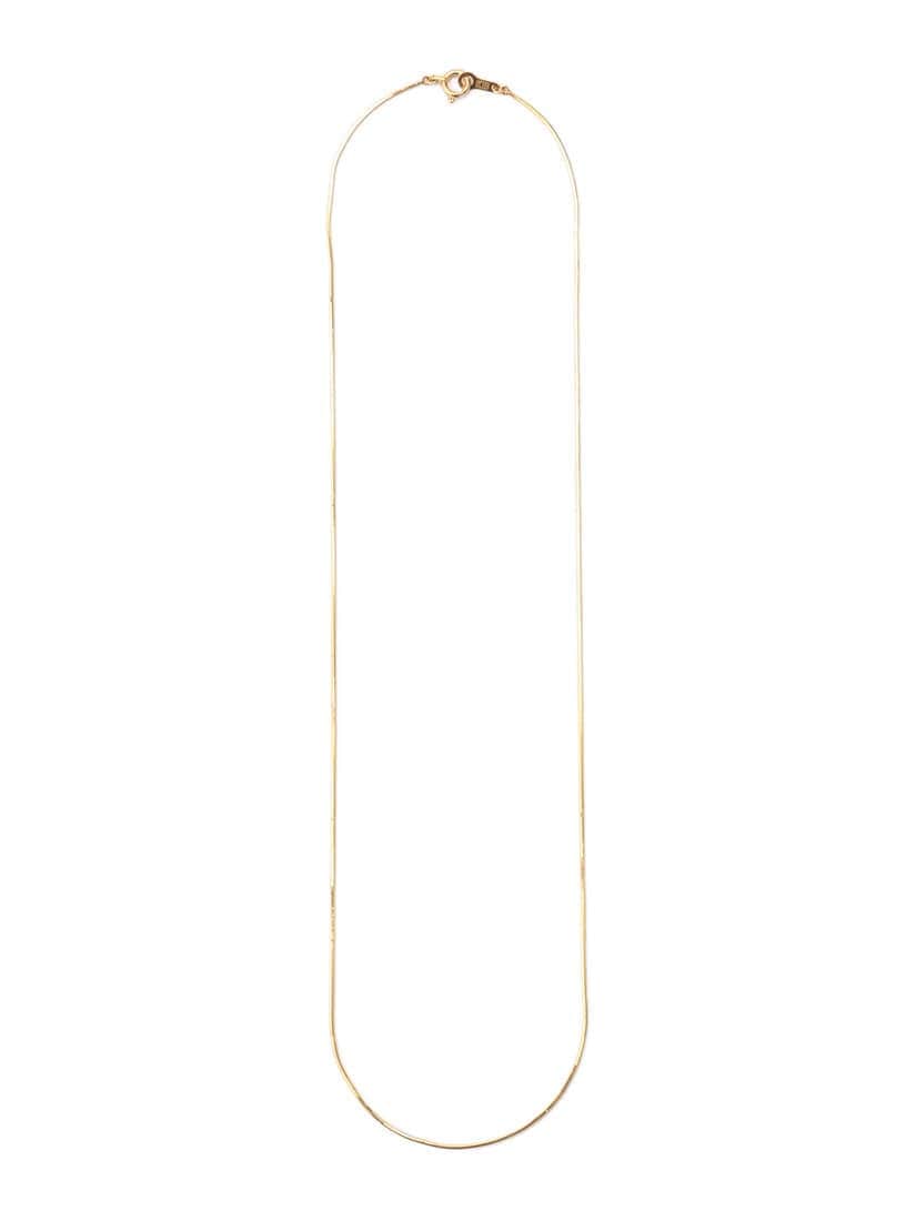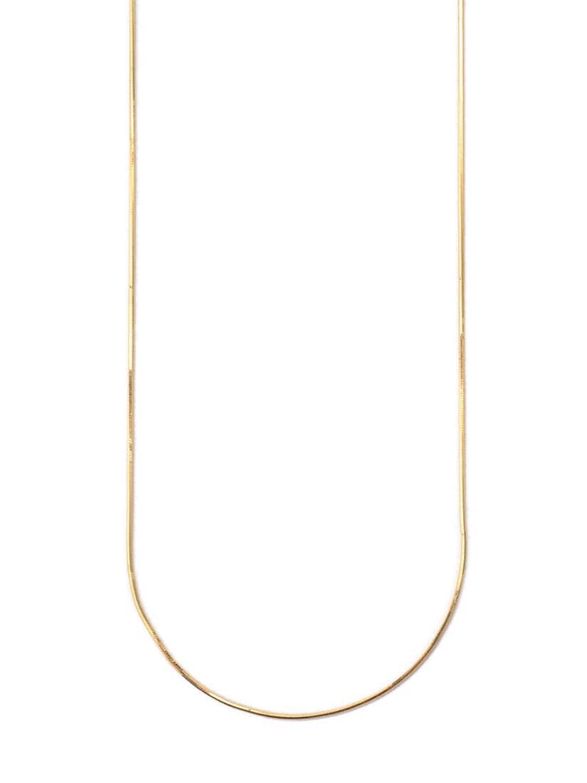 シンプルなスネークチェーンのネックレス。絶妙なチェーン幅がポイント。なめらかに光るゴールドがお顔周りの印象も華やかにしてくれます。40cmと短めなので、重ね着けもおすすめです。