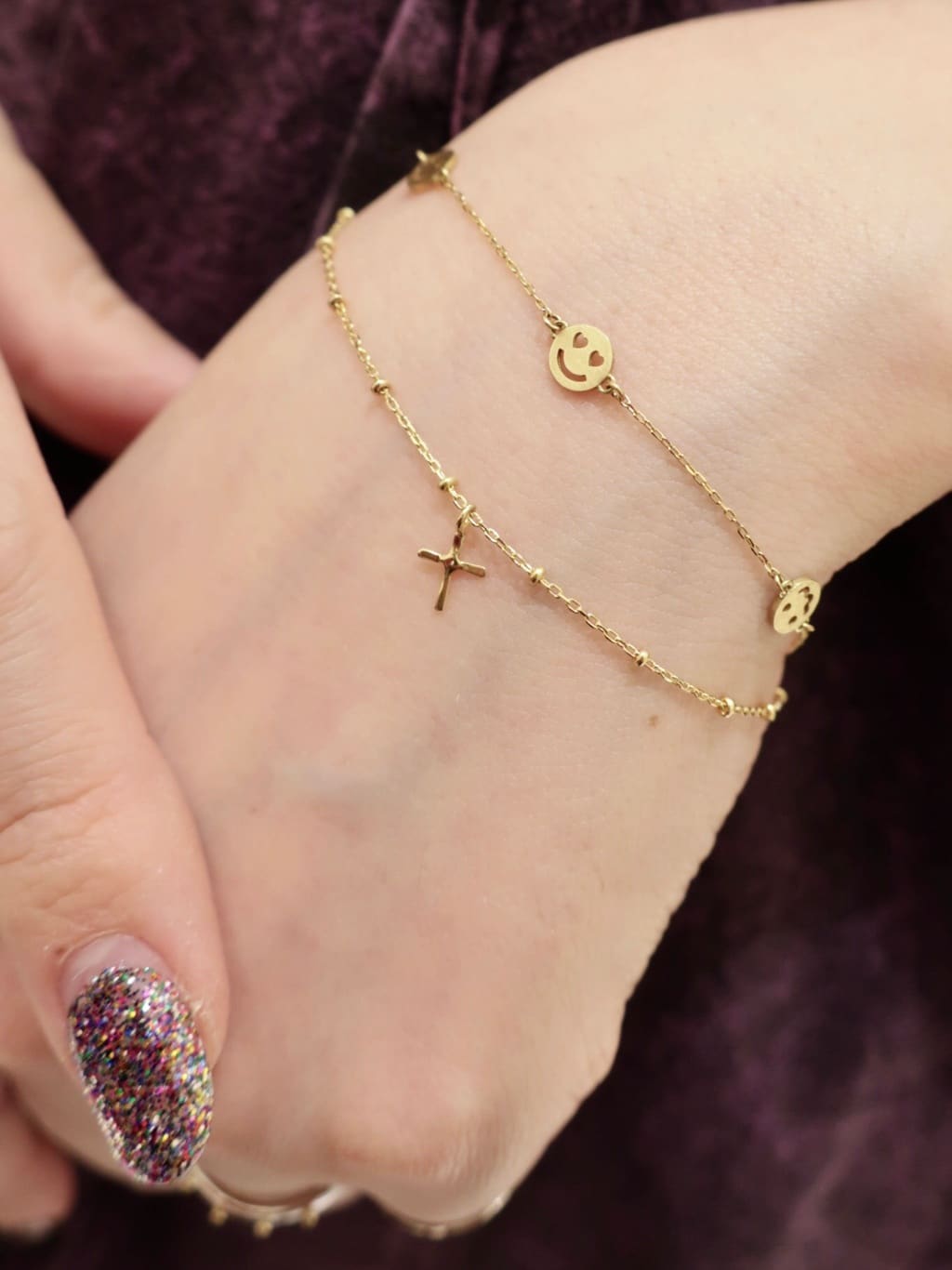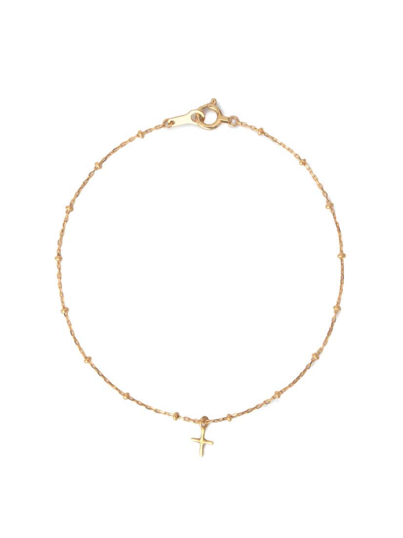 シンプルなクロスモチーフと、小粒のボールチェーンの組み合わせが程良い存在感を持たせてくれる、ブレスレット。どんなシーンでも着けられるモチーフブレスレットは重宝すること間違いなしです。