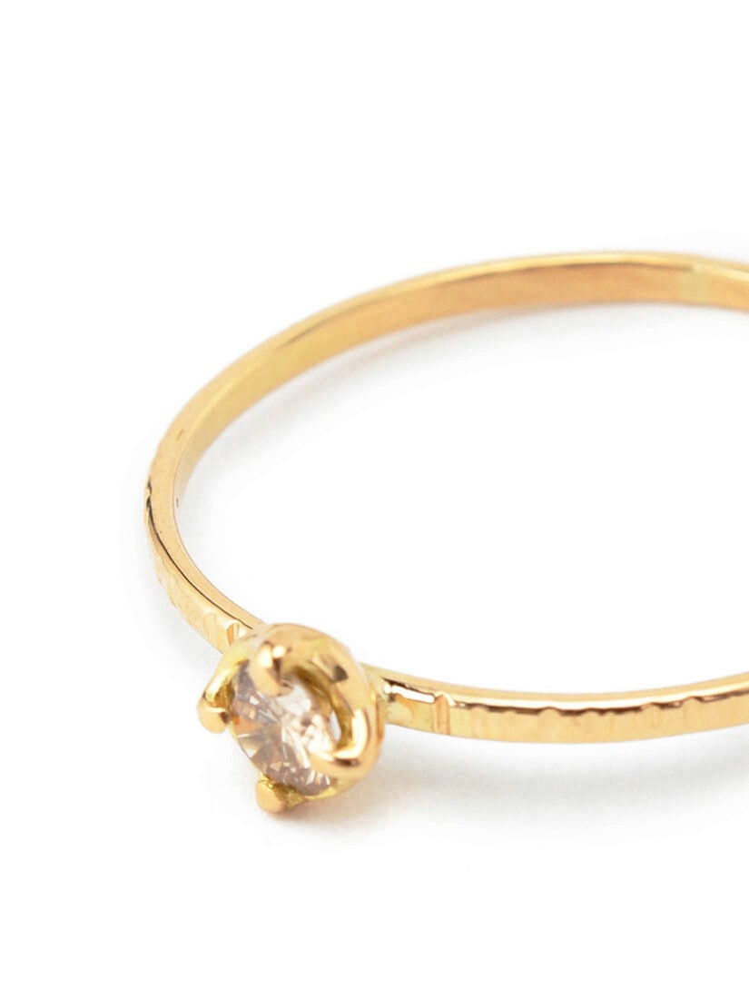 4つの爪でとめられたブラウンダイヤモンドのリング。少し角ばった程良い厚みのあるアームがクラシカルな印象をさらに引き立てます。