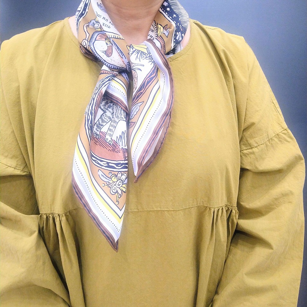 CHANCE INOUI スカーフ 70 x 70のスカーフは、コンパクトながら存在感のある一枚。シルク特有の光沢としなやかさが、装いに上品な華やぎを添えます。季節を問わず首元に、髪に、バッグにと自在に楽しめる万能なアイテムです。