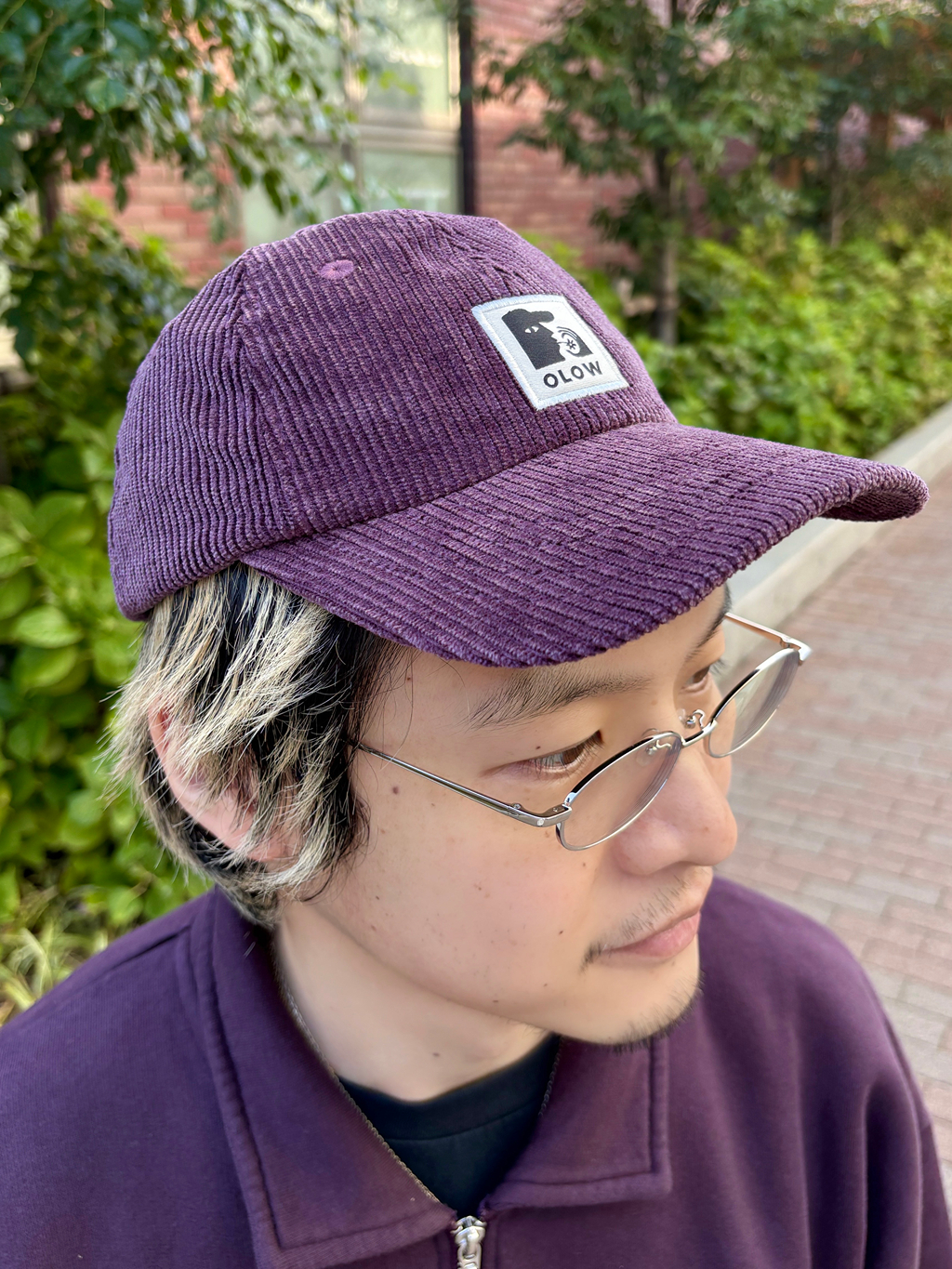 仕上げには、同系色のキャップをプラス。プラムトーンのグラデーションが秋らしい統一感を生み、シンプルながらもOLOWらしいアートとクラフトのエッセンスを感じさせるコーディネートの完成です!