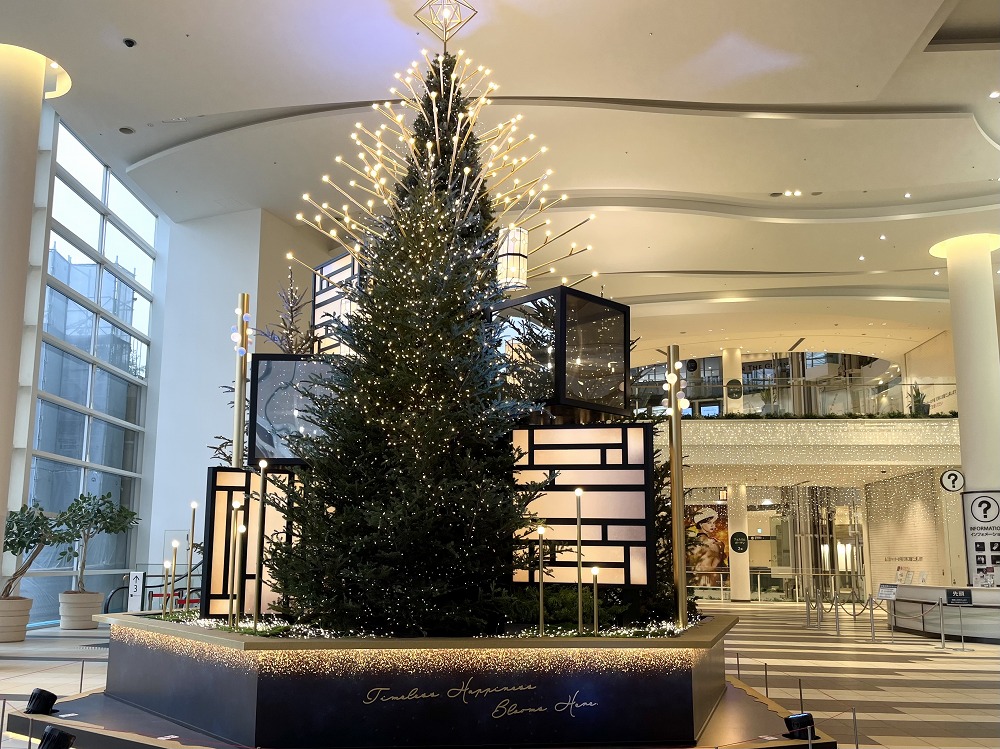 毎年11月に入ると大きなクリスマスツリーが店前に登場し、今年はシックに落ち着いた電飾で飾り付けられていました。