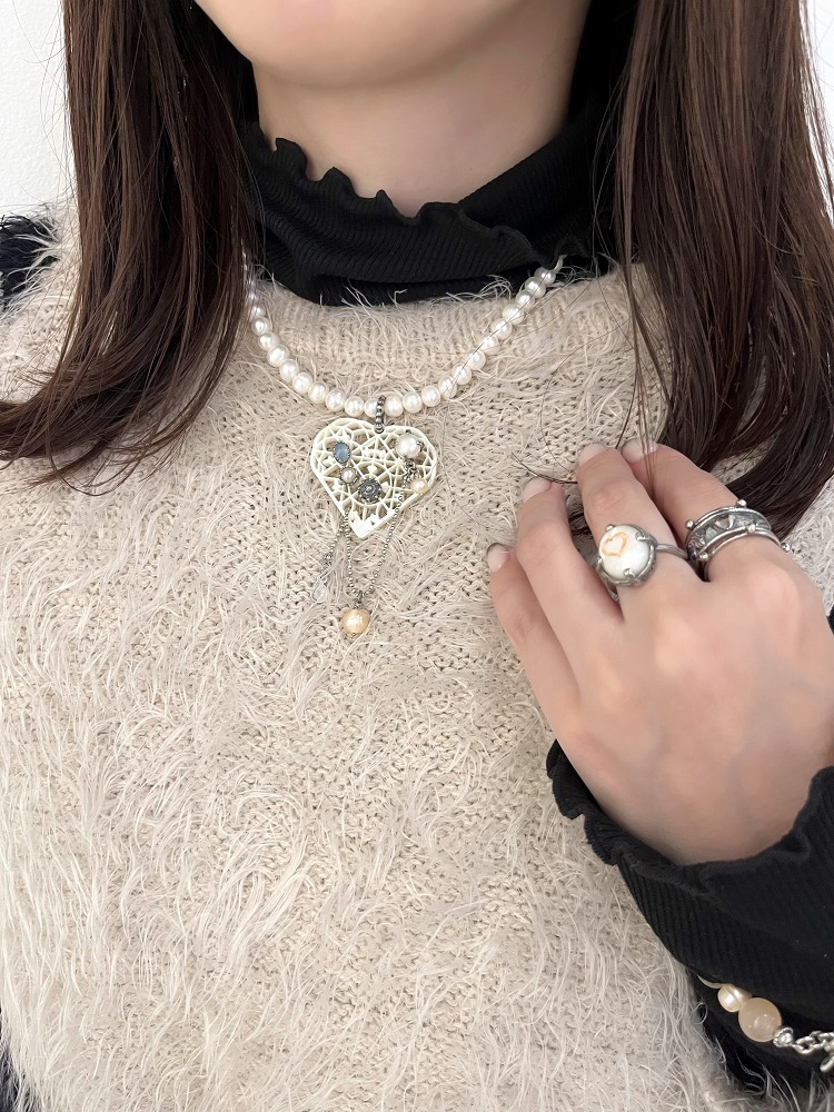 身に着けているブレスレットやリングには薔薇やハートといったロマンティックなモチーフが使われており、愛や永遠といった普遍のテーマを表現しています。