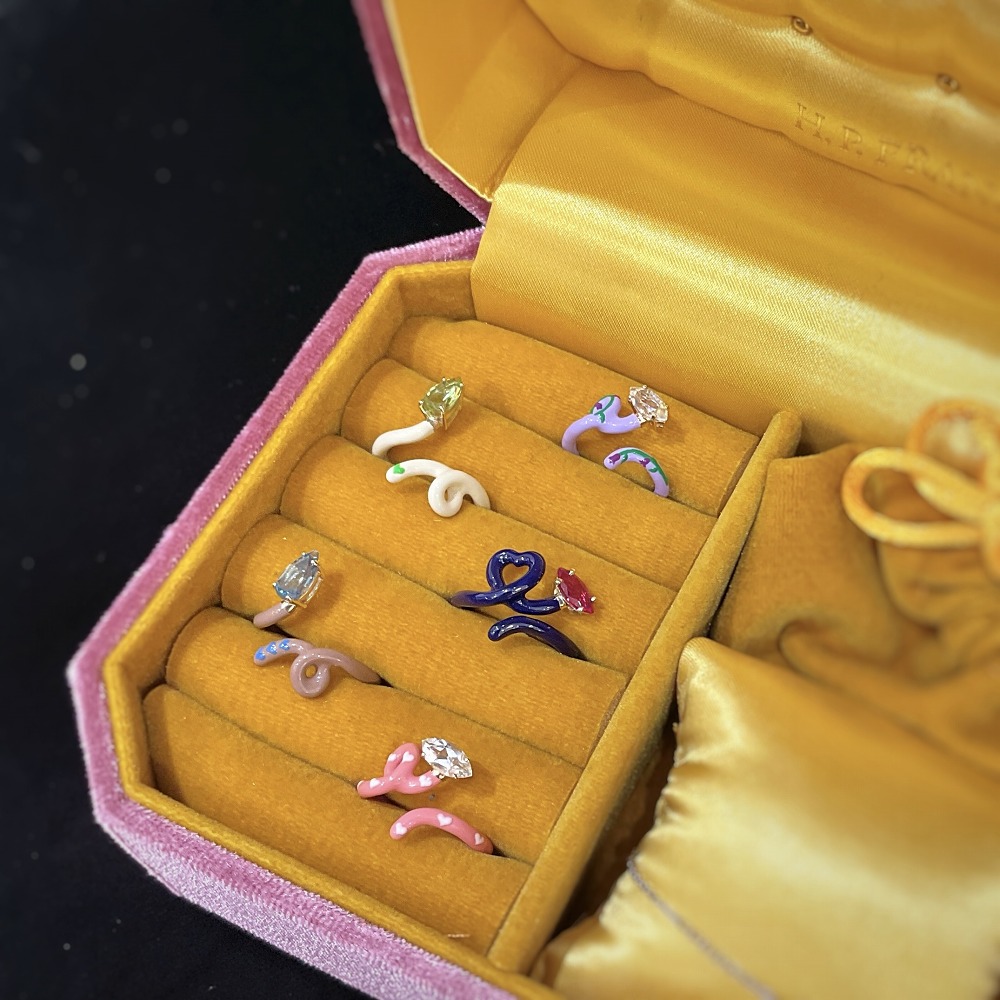 『H.P.LOVE』に因んで、手描きのハートや軸部分がハート型のリングが特別感を出してくれます。
