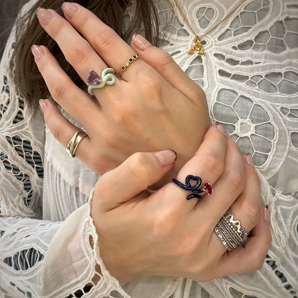 札幌店では、スタッフも試着しているネイビー×ハートのリングが人気です!!