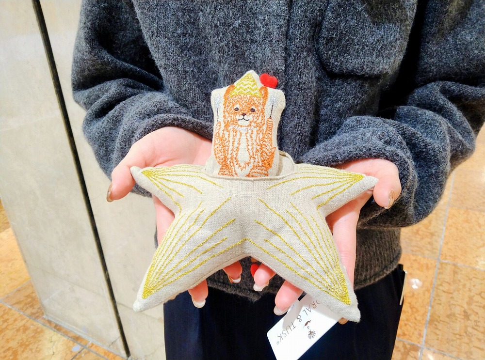 星のモチーフに、愛らしいキツネがちょこんと佇むファブリックオブジェ。手のひらに収まるサイズ感ながら、刺繍の繊細さと物語性がしっかりと感じられる一品です。