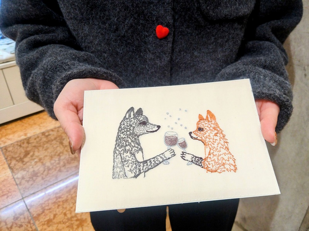 また、キツネたちが乾杯するシーンを描いた刺繍カードは、見るたびに思わず微笑んでしまうような、CORAL & TUSKならではのユーモアが詰まったデザイン。壁に飾ったり、棚に立てかけたりと、自由な楽しみ方ができるのも魅力です。