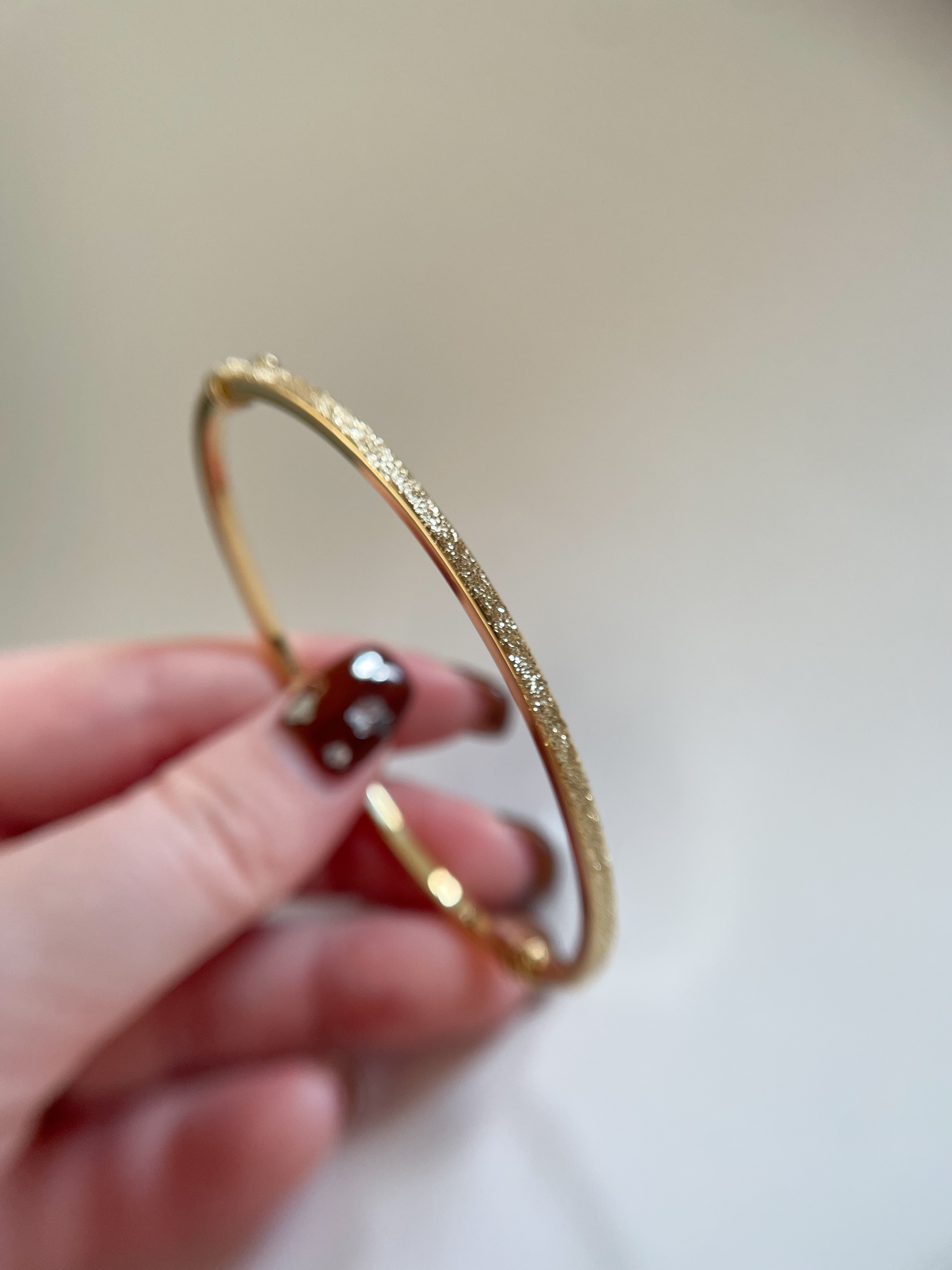 ブランドのシグネチャーでもある、「Florentine Finish」と呼ばれる伝統的なゴールド加工がほどこされたバングル。イエロー・ホワイト両色揃ってご覧いただけます。