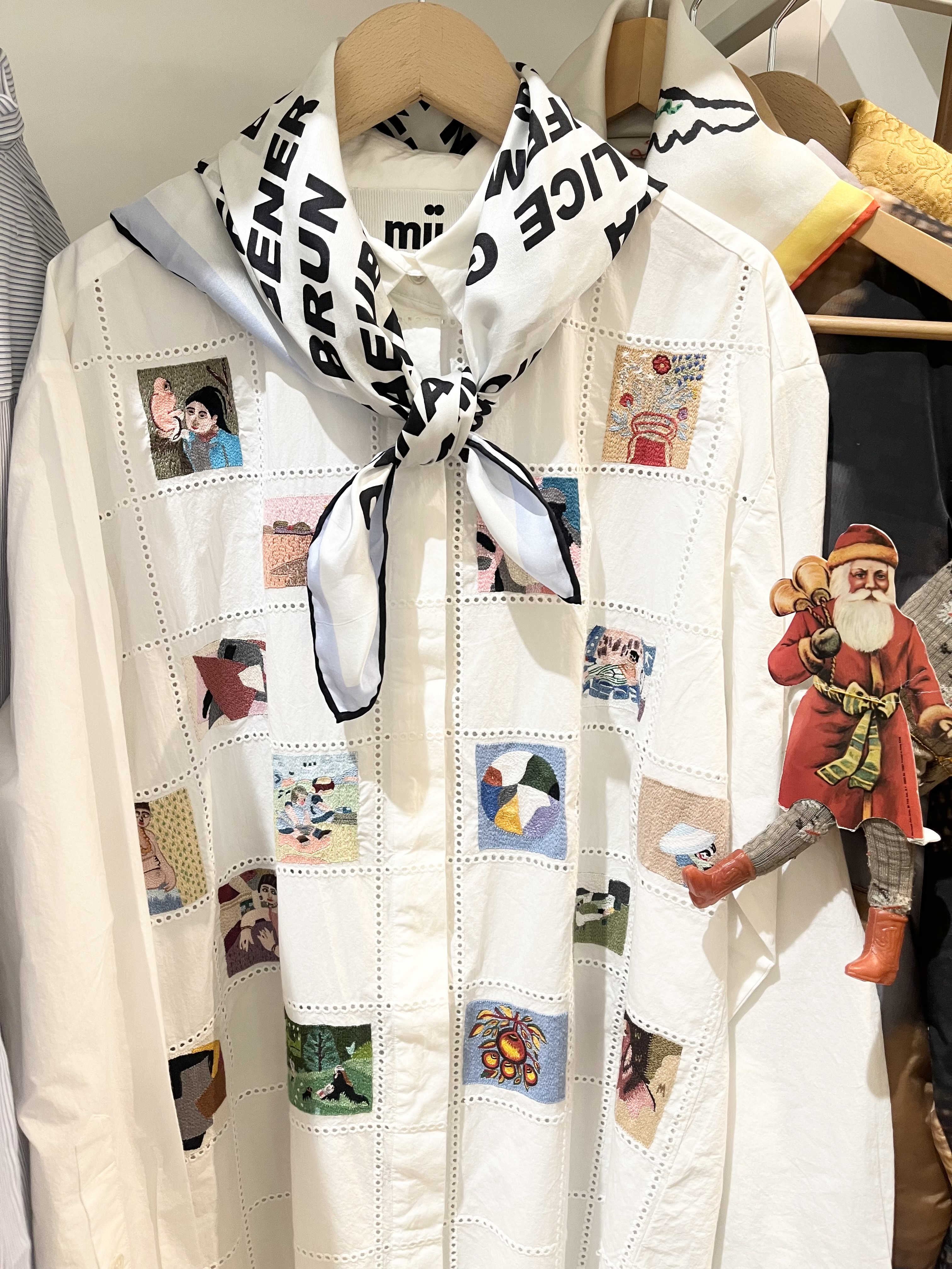 「mii collectionの刺繍のシャツの手仕事も素晴らしいねぇ... うっとりだぁ... 1枚のシャツに費やされる刺繍時間はおよそ55時間なんだってサ!びっくりだぁ! 大事に着なきゃねぇ」