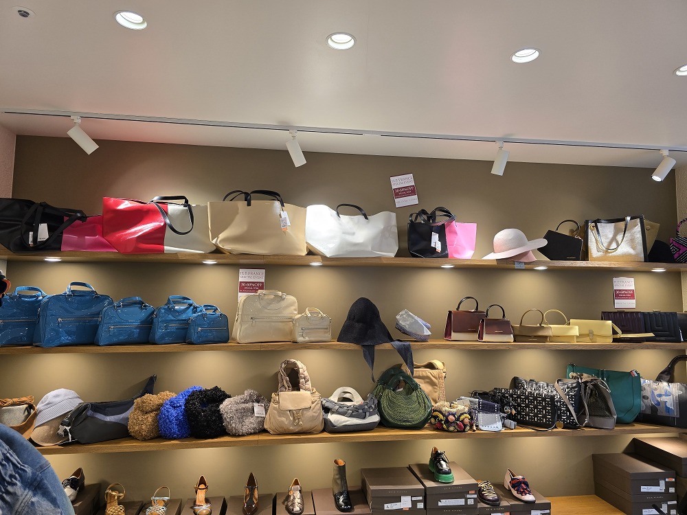 店内中央には、バッグやシューズ、ストールなどのARCHIVEアイテムが集結。カラーや素材、デザインの幅が広く、普段のスタイリングに新鮮なアクセントを加えてくれるアイテムが揃います。