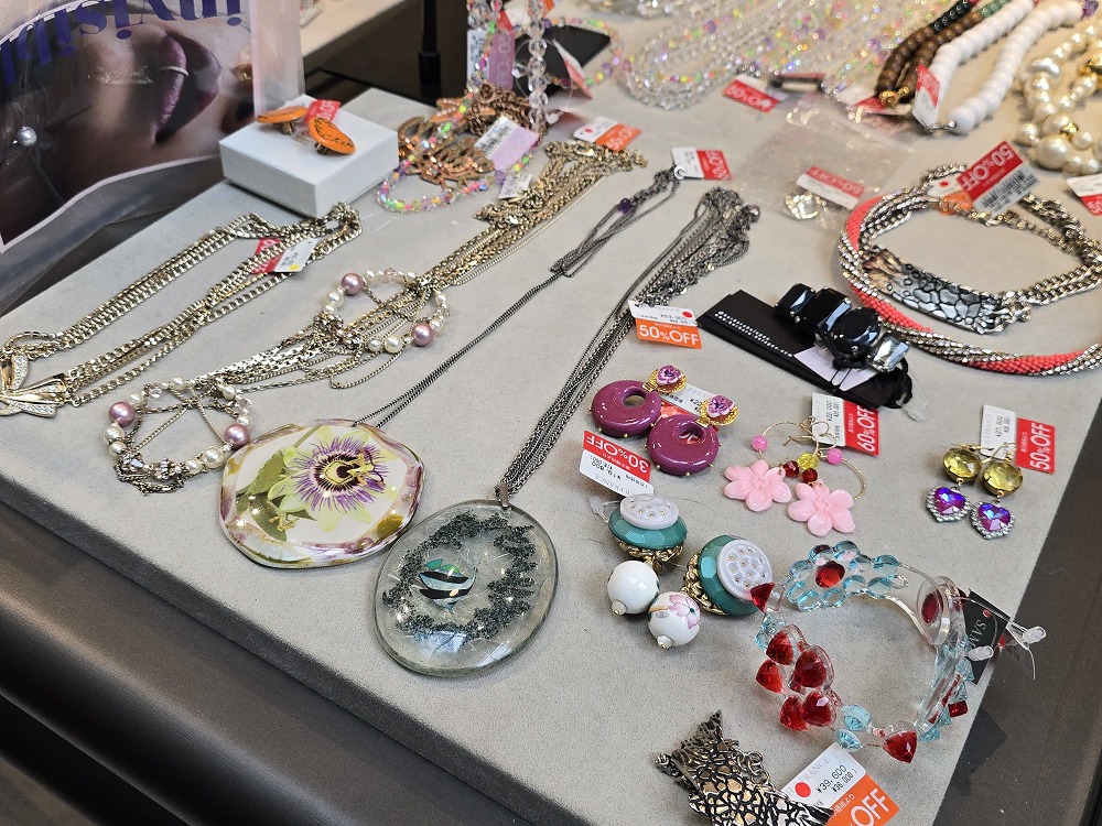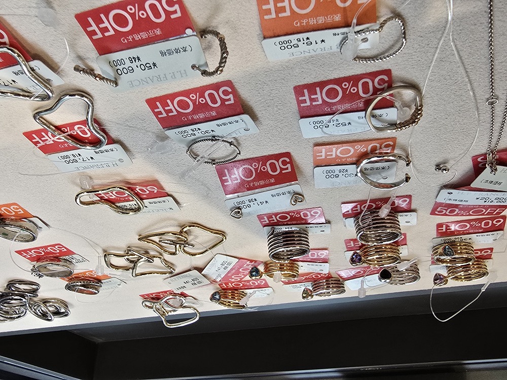 ジュエリー類は50%OFFを中心とした展開。重ね付けやギフトとしても選びやすいアイテムが揃っています。