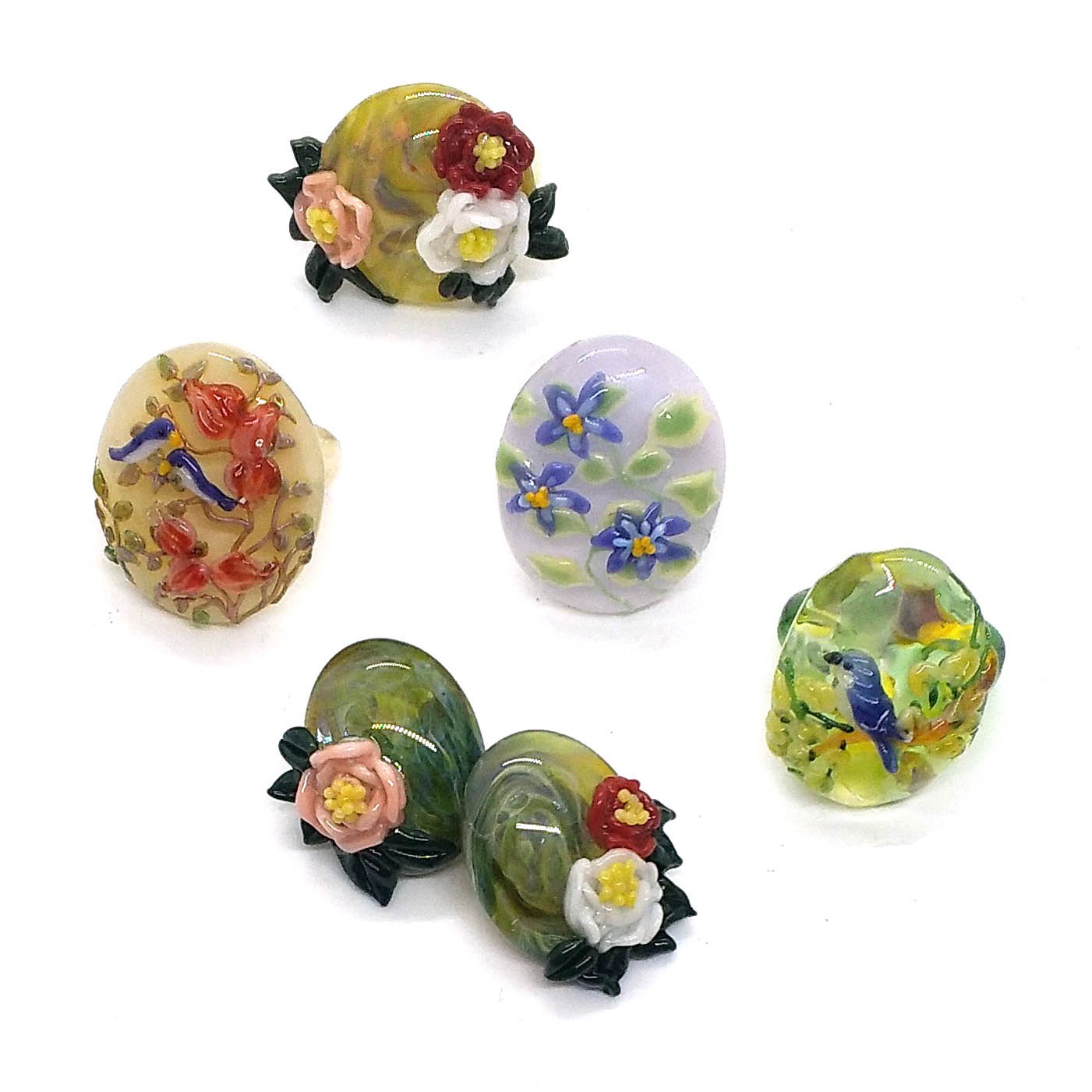 やわらかな陽ざしや、少しずつふくらむ蕾を思わせる色合い。透明感のあるガラスに、淡い色彩や軽やかなフォルムを重ねた作品は、身につけるたびに、心までふっとほどけるようなやさしさがあります。まだ寒さの残る季節だからこそ、ひと足早く春の気配を感じていただけるコレクションです。