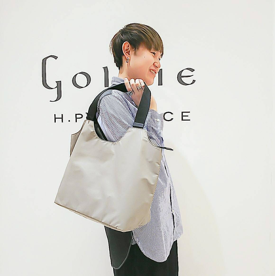 【2021年】入社して3年目の二子玉川店の山本さんですね。よく見てみると私と同じくジャックゴムのバッグをもってますね。このバッグの普遍的な良さがお客様には好評です。