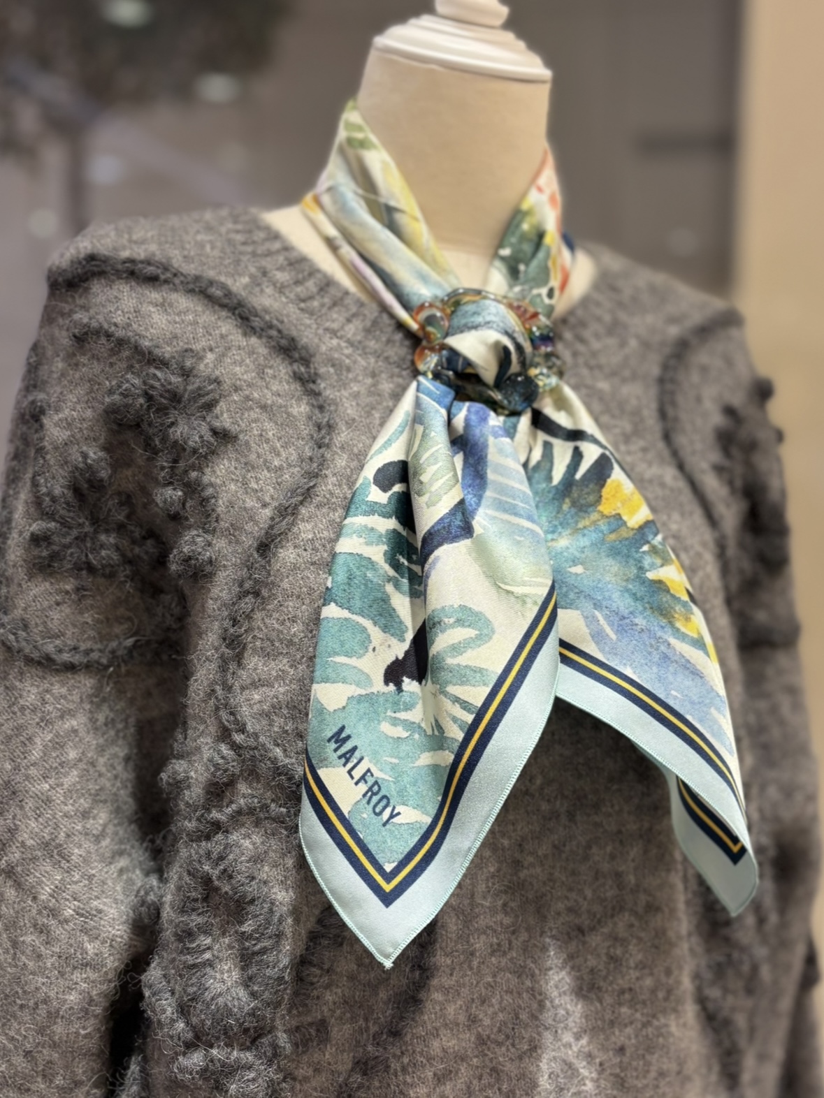 テクニック要らずで、どなたでも簡単にスカーフを美しく巻いていただけます。さっと通すだけで形が整い、いつものコーディネートに上品な華やかさをプラスしてくれるアイテムです✨スカーフアレンジがぐっと楽しくなる一点となっております。