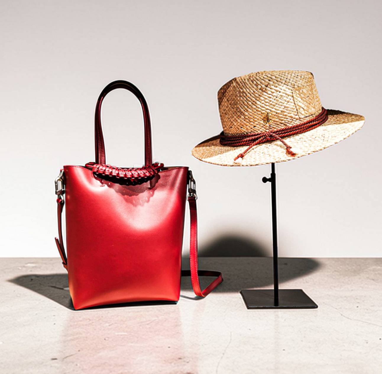 コンパクトで程よく収納力があり、さまざまなシーンで手に取りやすいショルダーバッグ。職人の手編みで仕上げた飾り編みのハンドルが特徴です。美しい発色のレッドもコーディネートの柱となるでしょう。