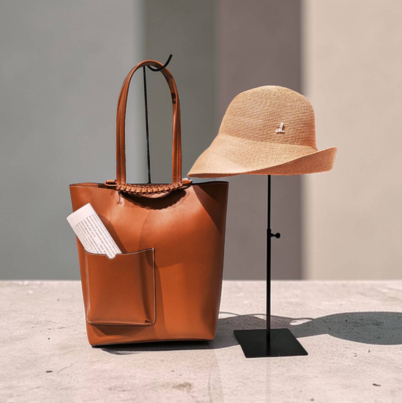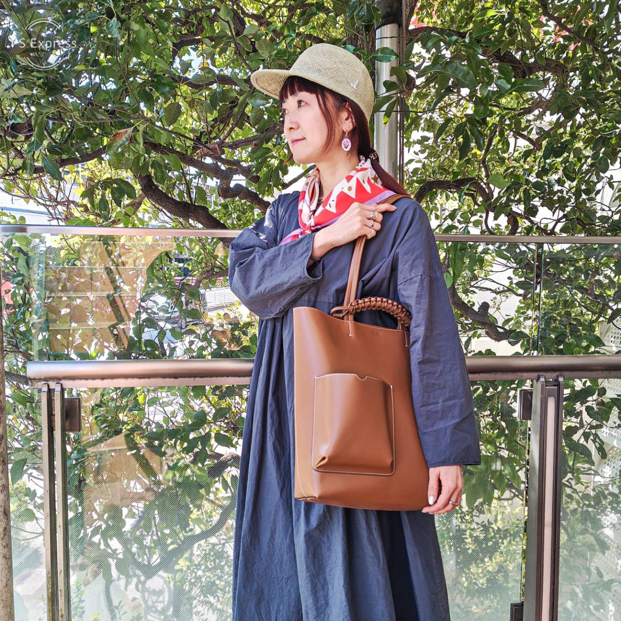 このバッグの特徴となるアウターポケットは読みかけの本を持ち歩くようにと知的な印象のデザインです。ポケットはペットボトルも入るサイズ感で使い方は様々です。 ぜひお気に入りの書籍をコーディネートに組み込んでみてはいかがでしょうか。