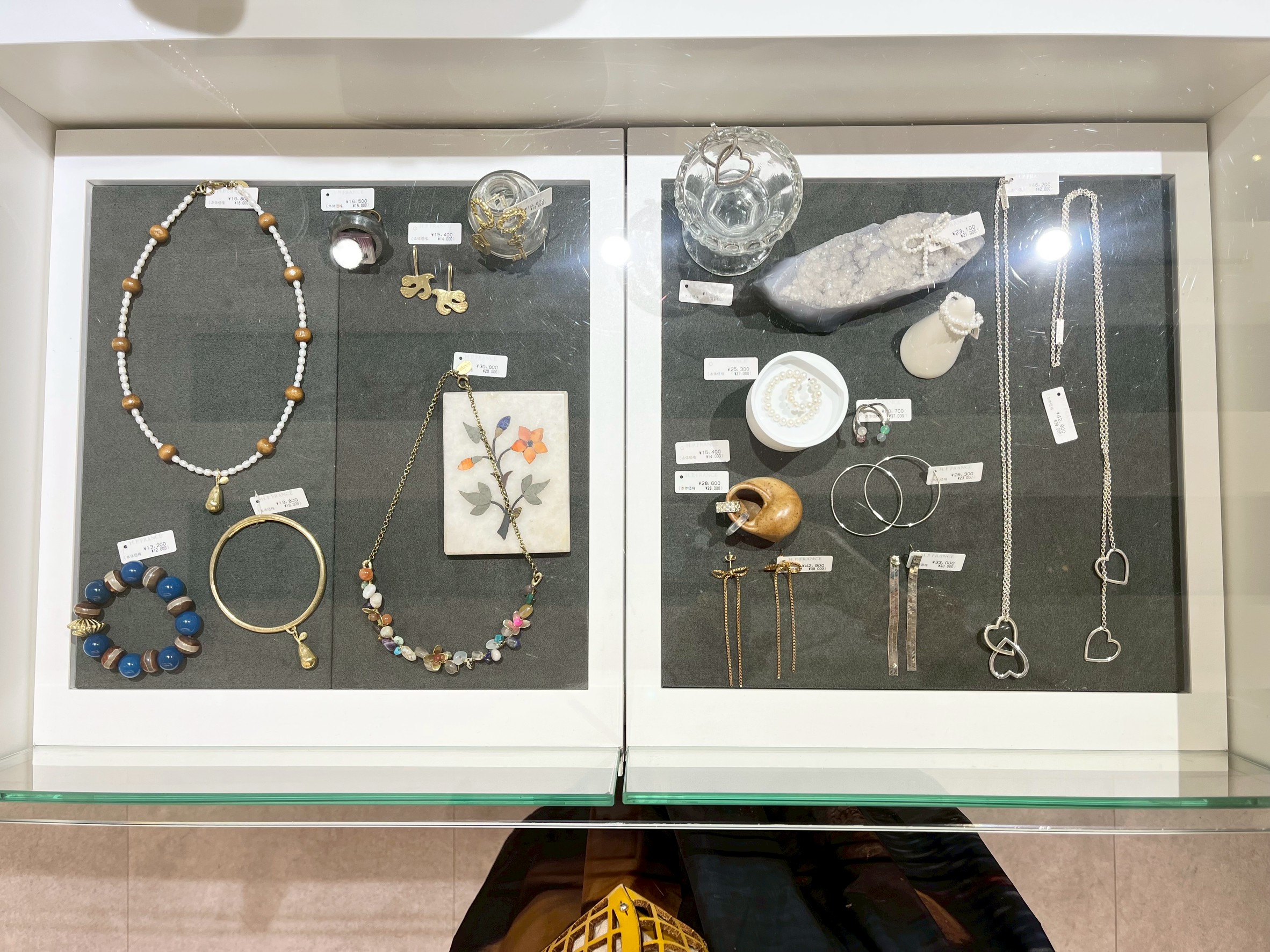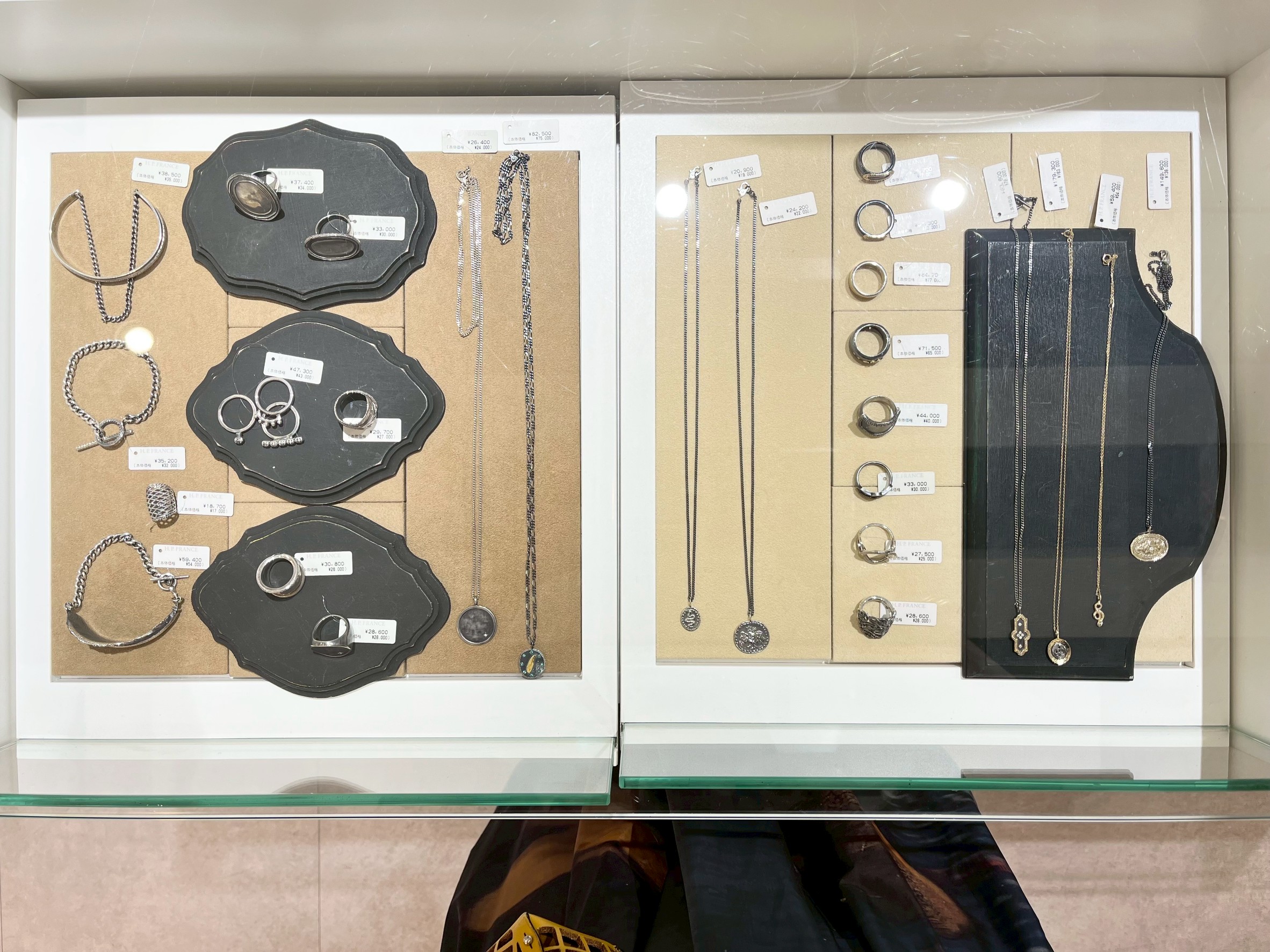 右側のSASKIA DIEZはドイツ発のアクセサリー。SILVERをメインに、シャープな、格好いい印象があります。