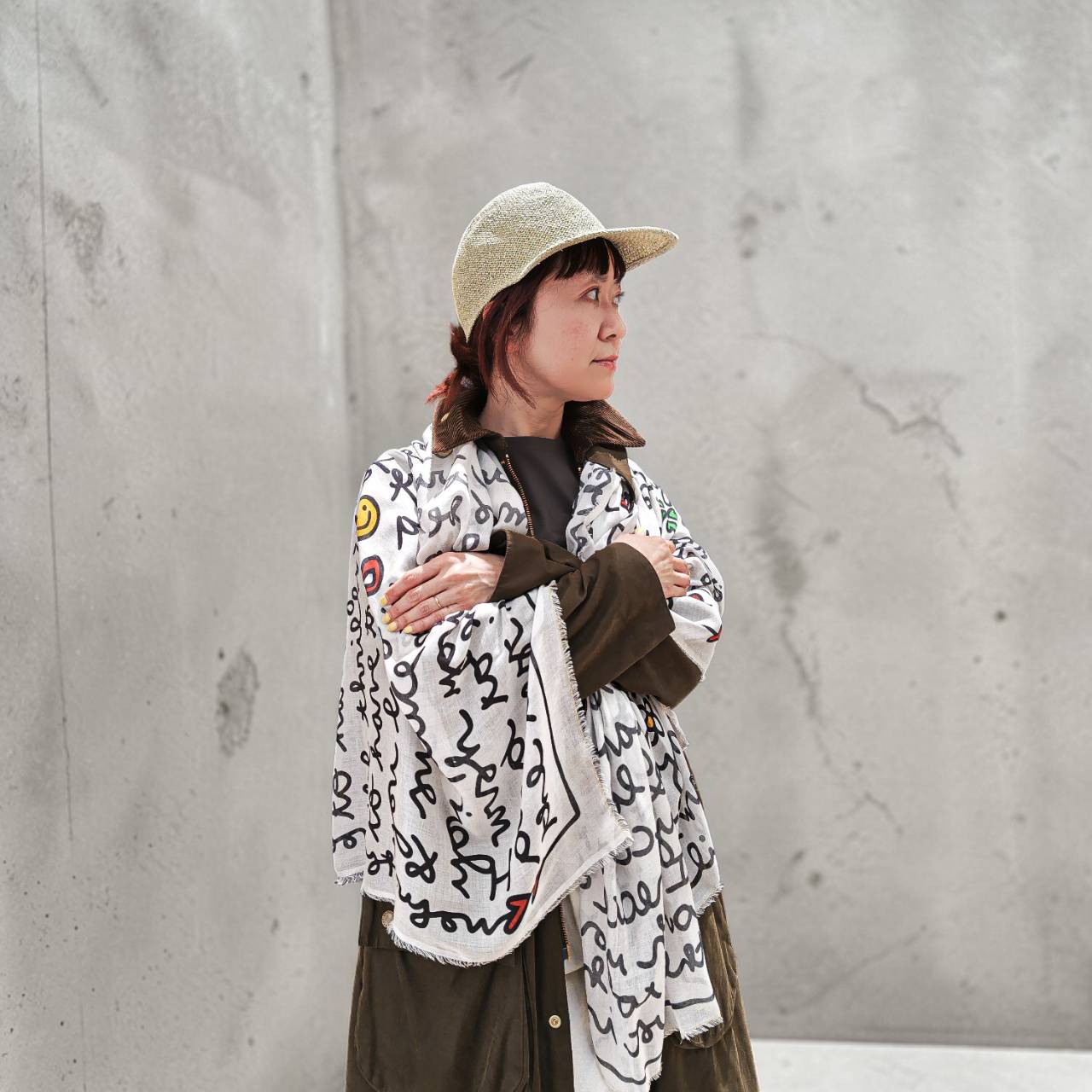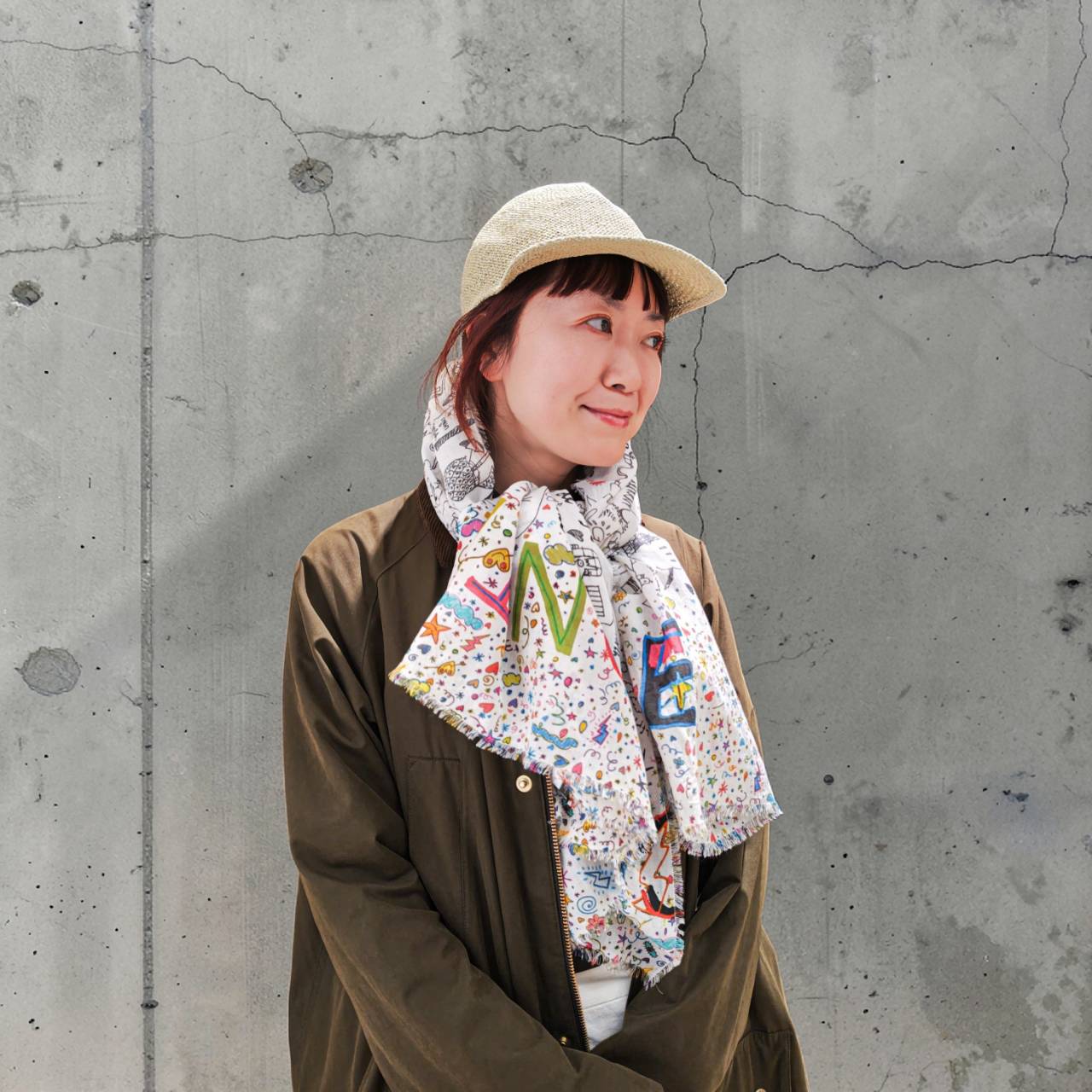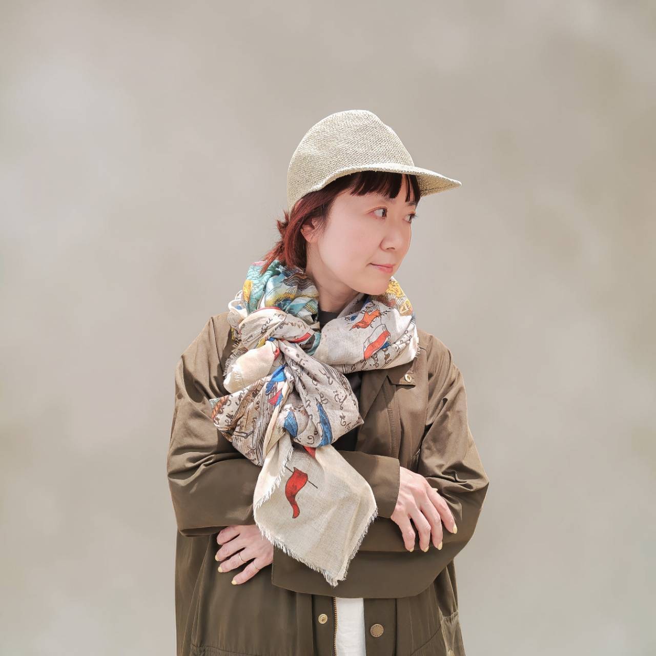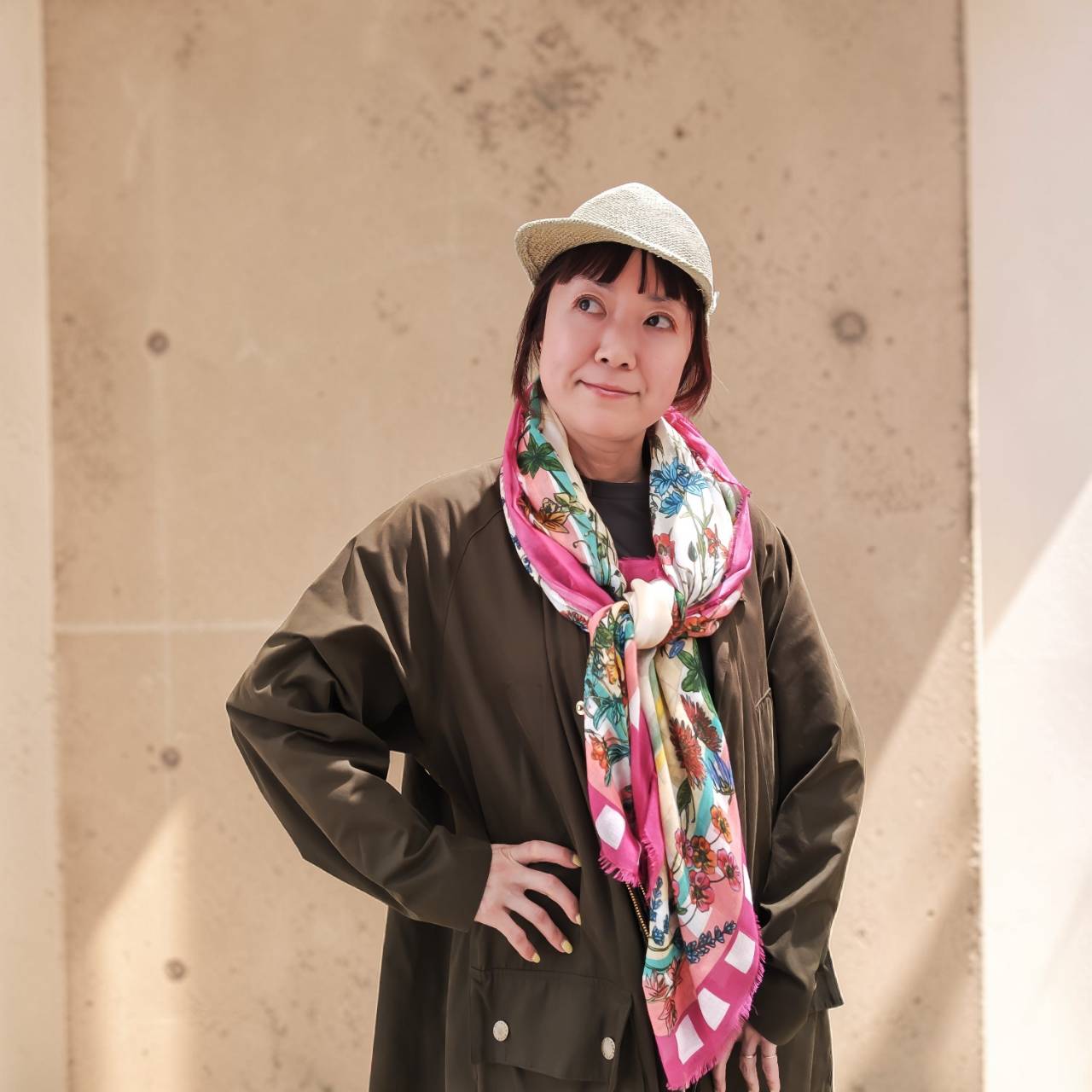 ギンガムチェックってちょっと洋服だとハードルが高い柄ですがストールだと自然に取り入れやすいのではないでしょうか。春らしい色合いの花とギンガムチェックの組み合わせはさりげなく巻くだけで華やかな印象になりますよ。