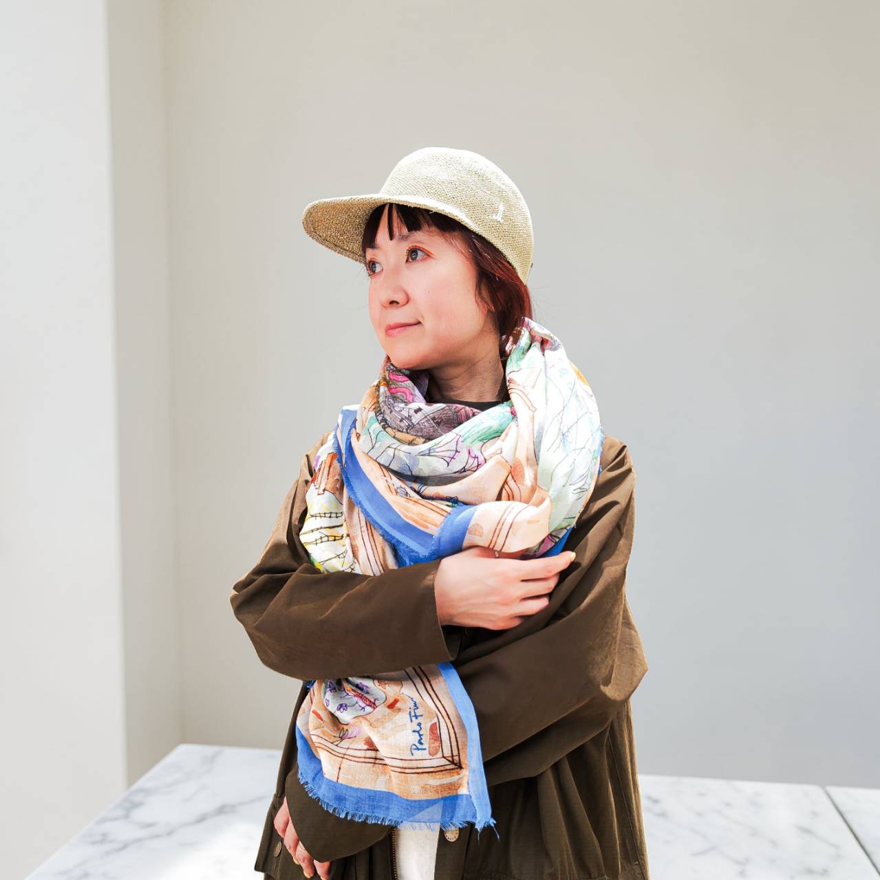 お馴染みのパオロ・フィウミによる、象徴的なミラノ地図を現代風にアレンジした作品。モダールとシルクをブレンドしたやわらかな生地に、街路、建築、さまざまな風景が織りなすミラノの姿を、正確かつ詩的な筆遣いで細部に至るまで表現されています。アートを身に纏うことができるステキな一枚です。