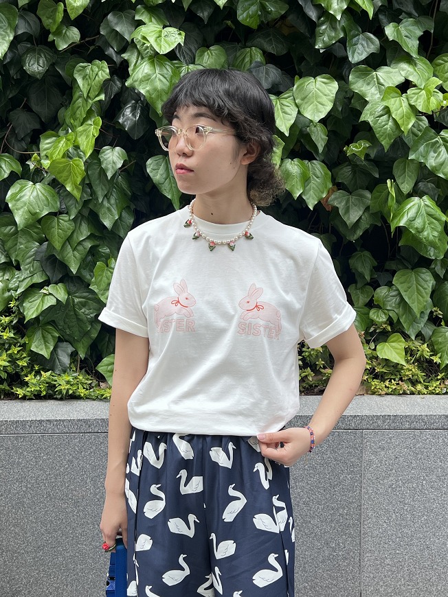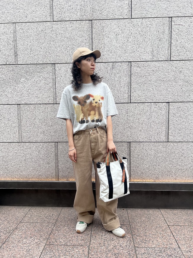 やわらかいタッチのアニマルグラフィックTシャツを主役にした、ナチュラルで抜け感のあるカジュアルスタイル。