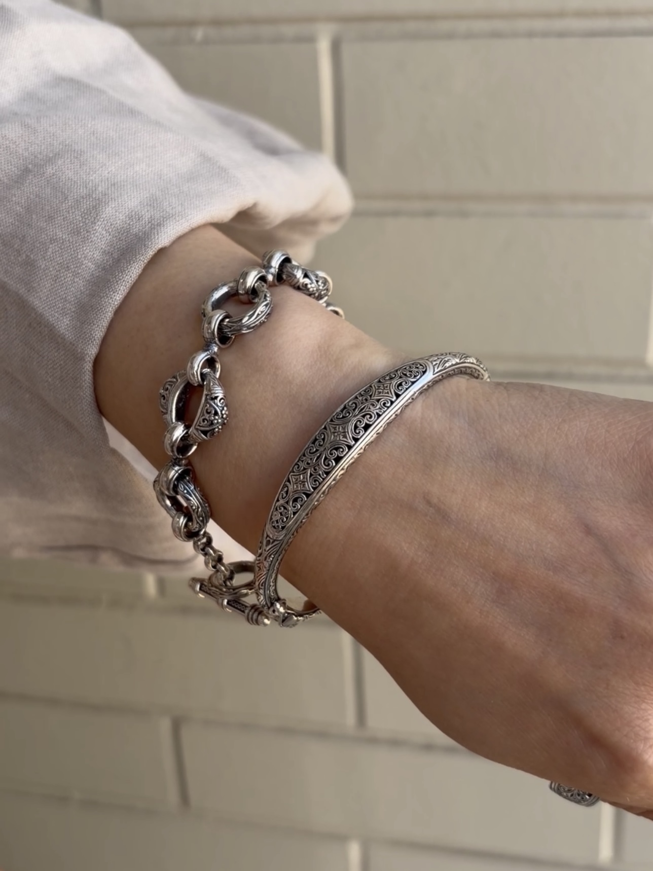 装いが軽やかになるこれからの季節は、コーディネートに存在感を添えてくれるボリュームのあるシルバージュエリーの気分が高まります。