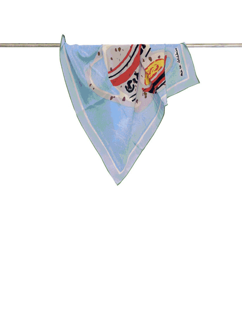 ノスタルジックに演出された傘や帽子🌂 マットに色をのせるところと、雲などの透けた部分の質感とが織りなす情景は、 何か物語が始まりそうな雰囲気を漂わせています。