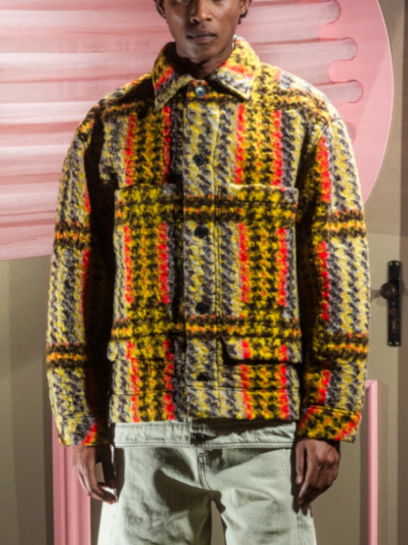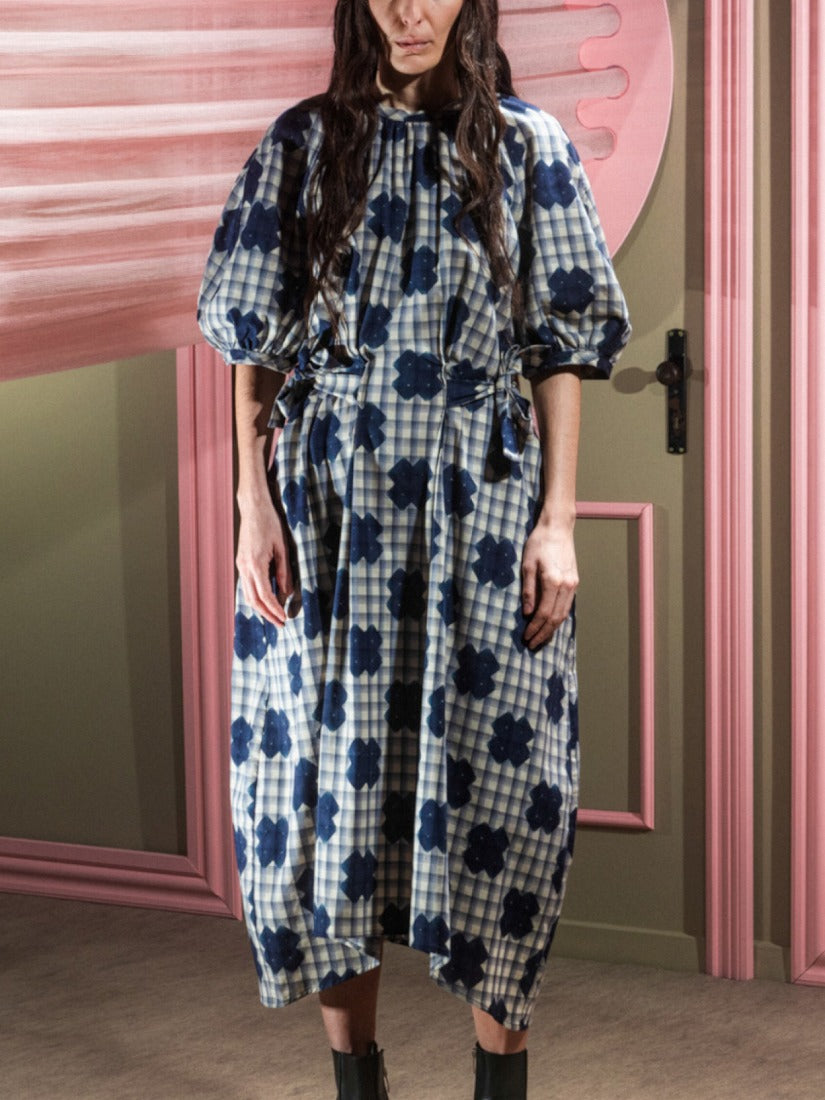 着た際の立体感が程よくて素敵です。何よりチェスボードのようなチェックの上に重なる✖︎模様、魅力的。