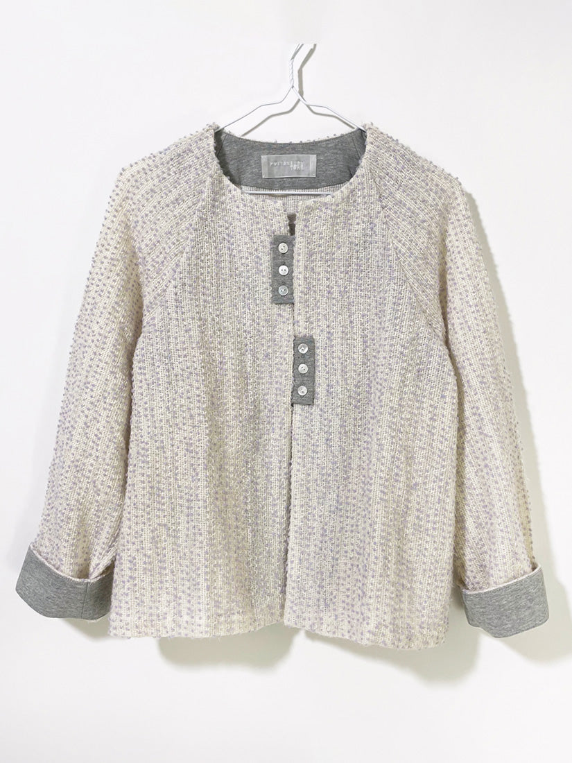 ふわふわとした粉雪を感じさせるやわらかい生地。ポツポツとしたラベンダー色が上品な印象です。