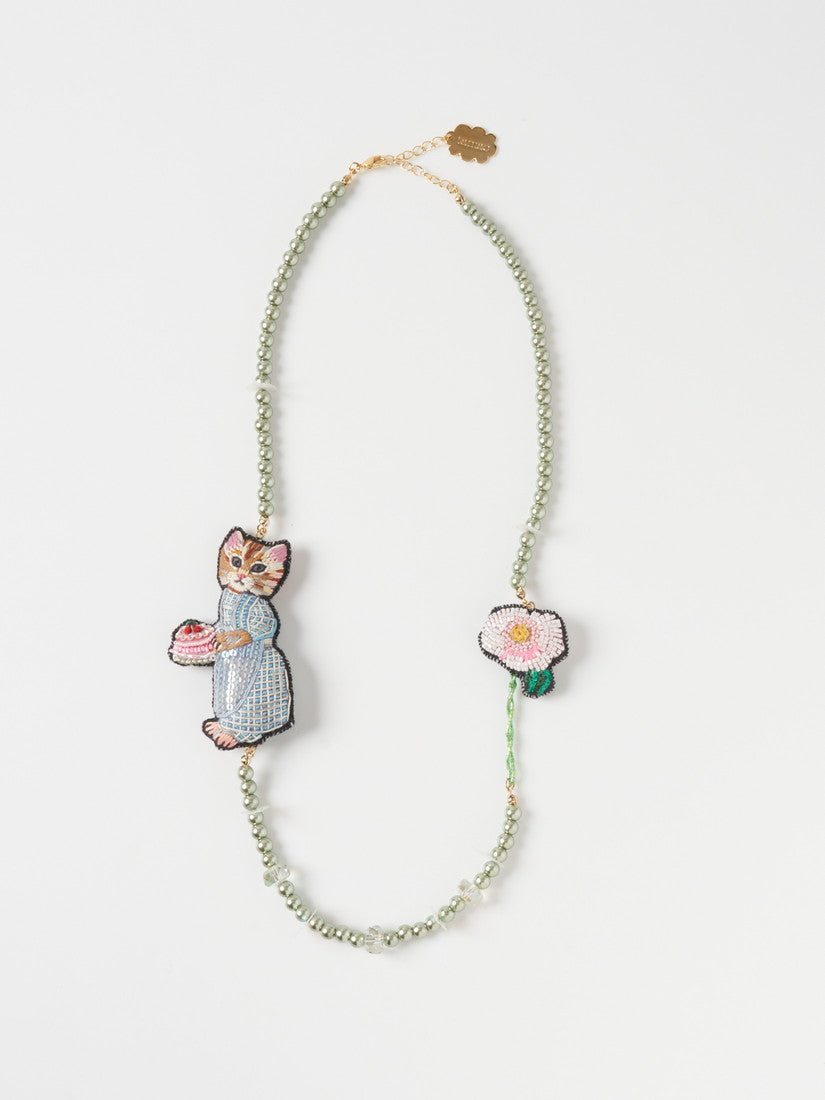 パールが連なるネックレスには様々なかわいい猫ちゃんたち。