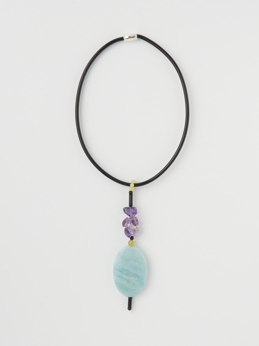オーバル型のアマゾナイトと、アメジストの飾りが綺麗なネックレス。