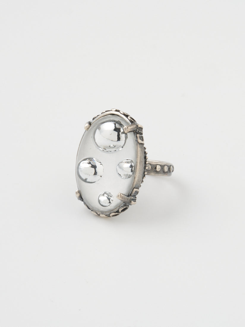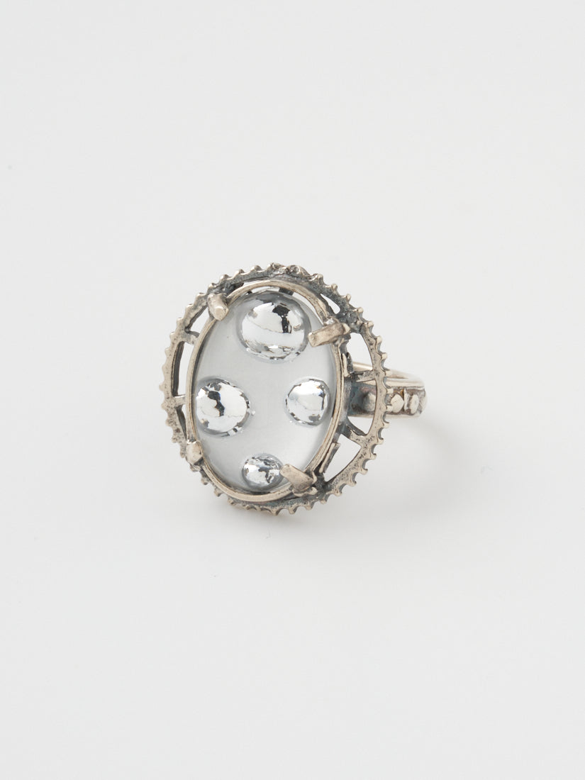 中でも白を用いたビンテージガラスのリングはフェミニン系のお洋服に合わせても全体が一気にシックに纏まるのでおすすめです。