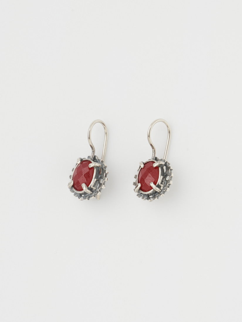 お次は私が私物で愛用しているGem Kingdom(ジェム・キングダム)のビンテージガラスを用いたリングとレッドアガットのお石のついたピアスを使ったコーディネート。