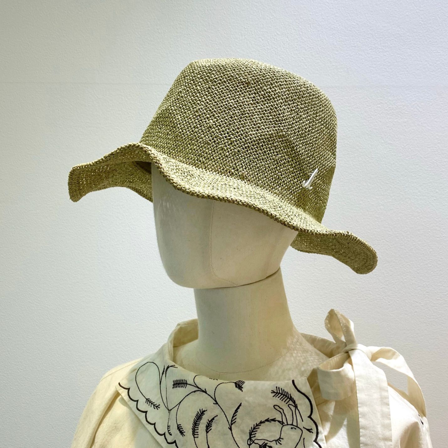 続いてはエレガントな形のクロシェハット。日本製のリネンで仕立てられており、