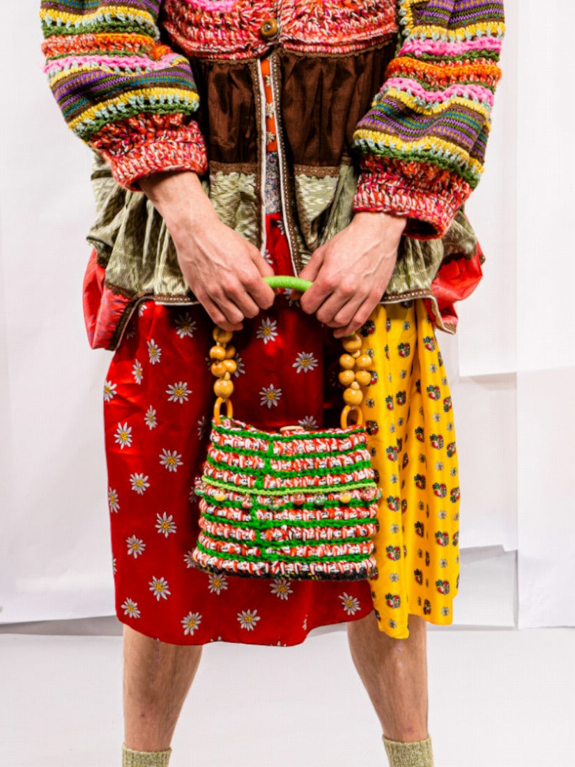 bag ¥57,750 グリーンがアクセントのバッグ。 ウッドパーツと編み地の組み合わせが可愛くて😍 キッチュな魅力たっぷりです。