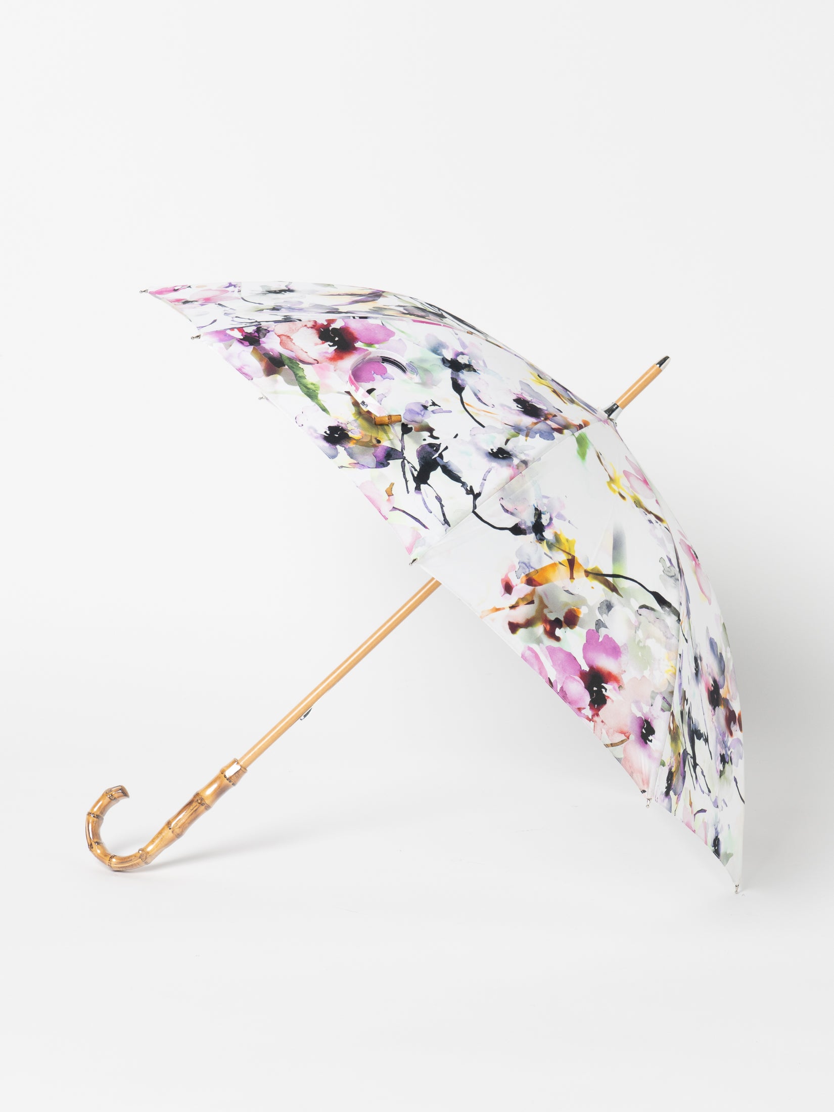 オーストリア産の水彩画風のボタニカルプリント生地に、木棒と竹の手元を合わせた、ナチュラルな雰囲気をもつ晴雨兼用傘☂️🌂 紫外線遮蔽率90%以上で小雨にも対応出来る優れもの💡👏