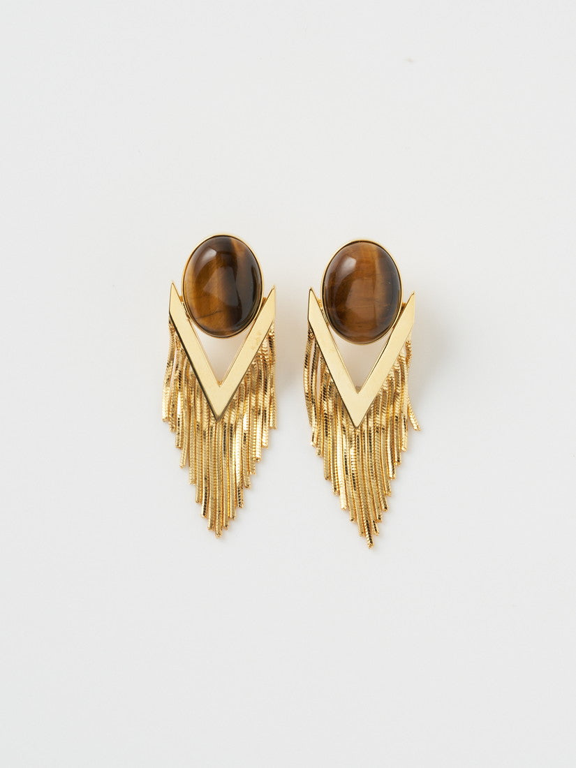 大ぶりなイヤリングは、BROWN タイガーアイ
