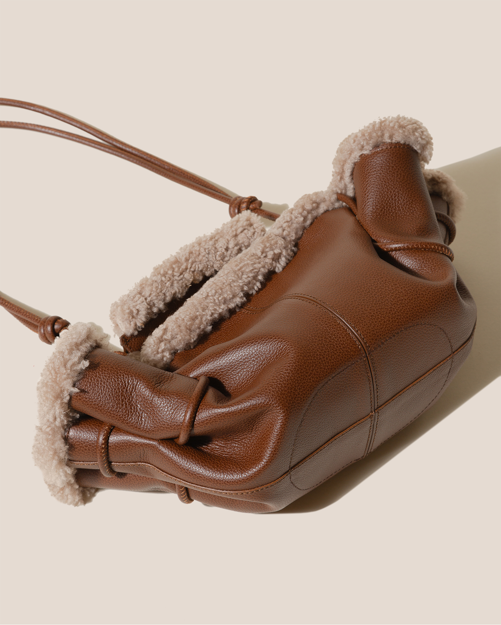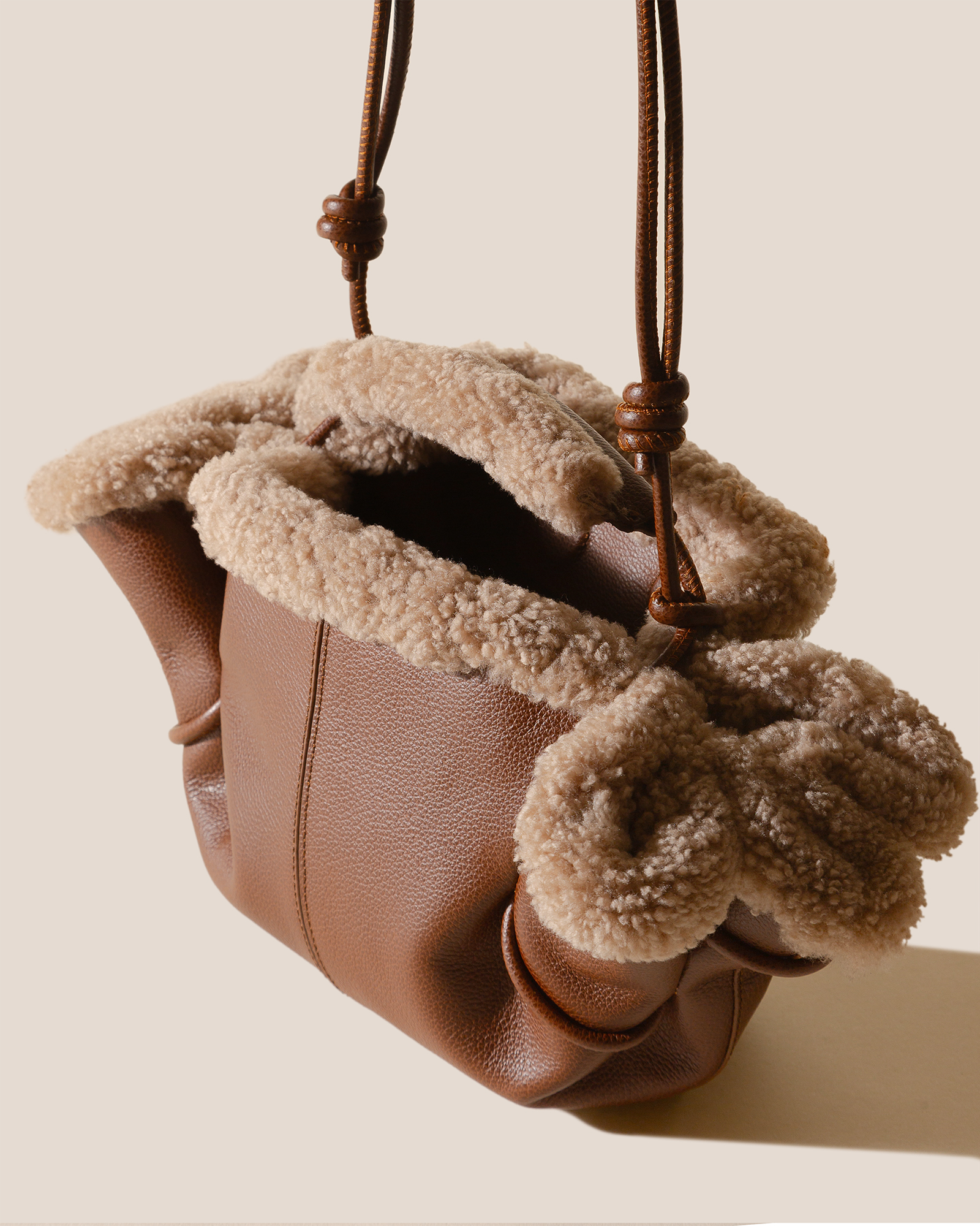 柔らかなブレード、ボディのプリーツとコロンとしたフォルムに、愛らしさとモダンなムードとが同居するバッグです。