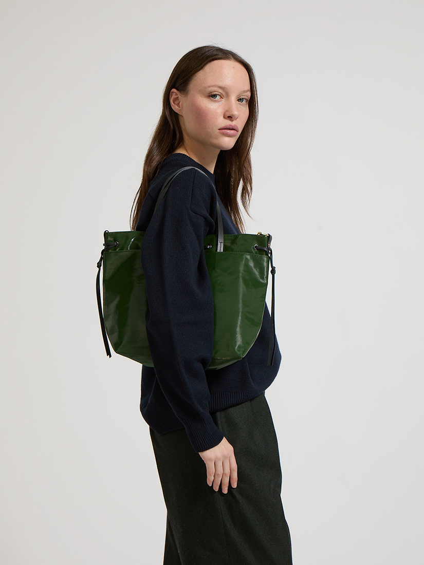 天然のリネンにポリウレタンをコーティングした、ジャックゴムの人気シリーズ。 軽さと耐久性と耐水性を備えつつ、レザーやゴールドメタルのディティールがよりシックな仕上がり。