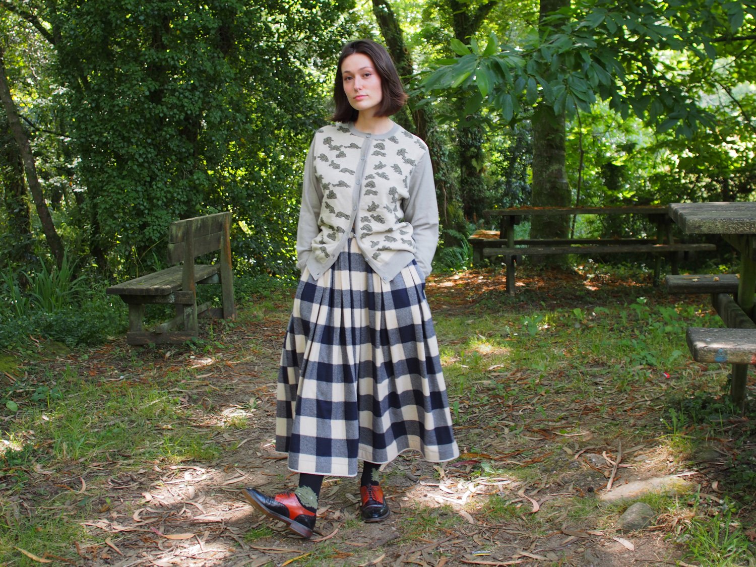 D-due(デ・ドゥエ)の2025年秋冬のテーマは、ガリシア地方に自生する、ビロードのように柔らかな苔。“MOSSY”と名付けられたキャラクターがプリントや刺繍で随所に登場し、ブランドならではの遊び心を添えたコレクションとなっています。