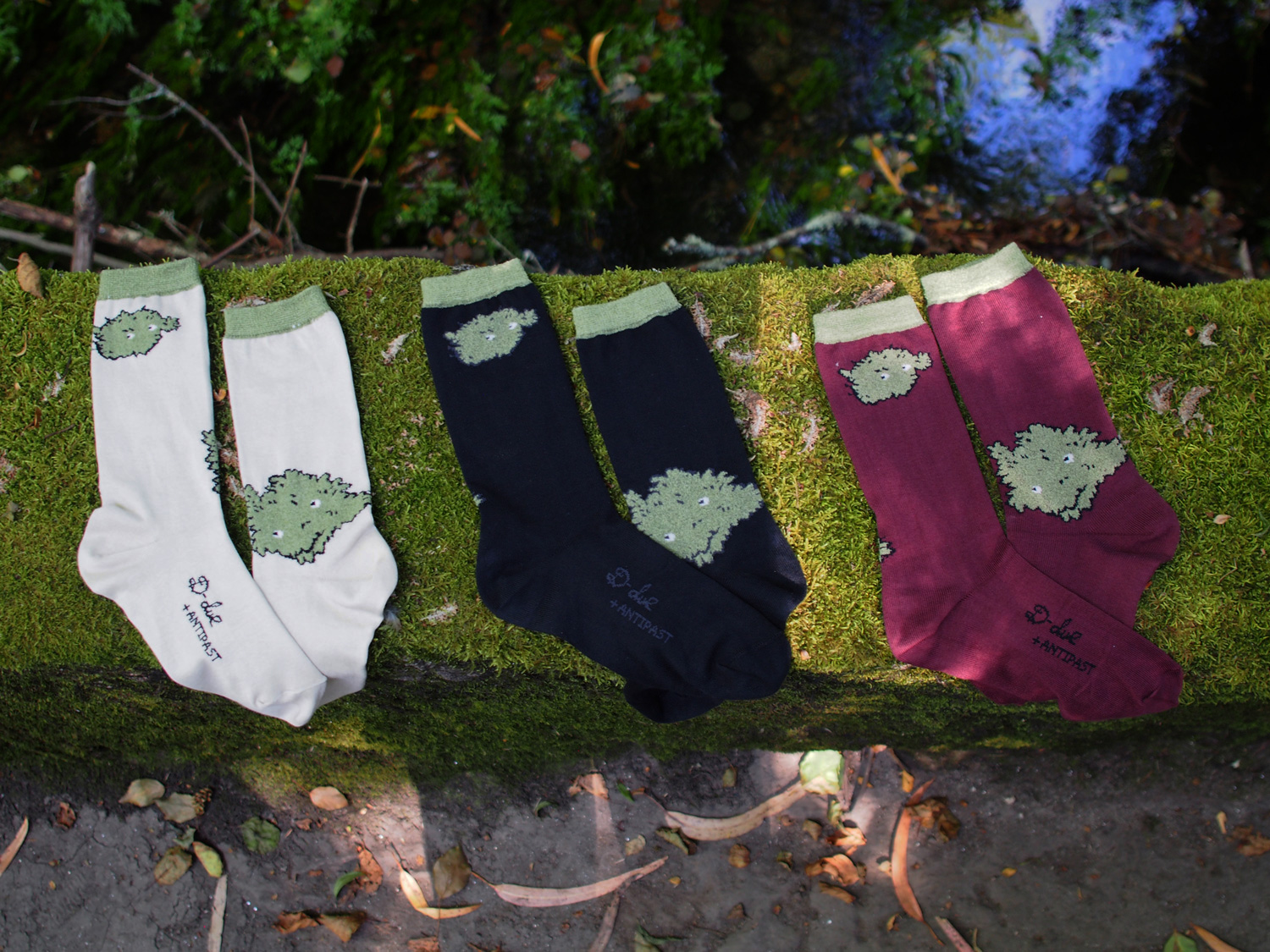 D-dueとANTIPASTによるスペシャルコラボレーションでは、“MOSSY”が遊ぶようなモチーフを落とし込んだ、ANTIPASTならではのソフトな肌触りのカーディガンやソックスが揃います。