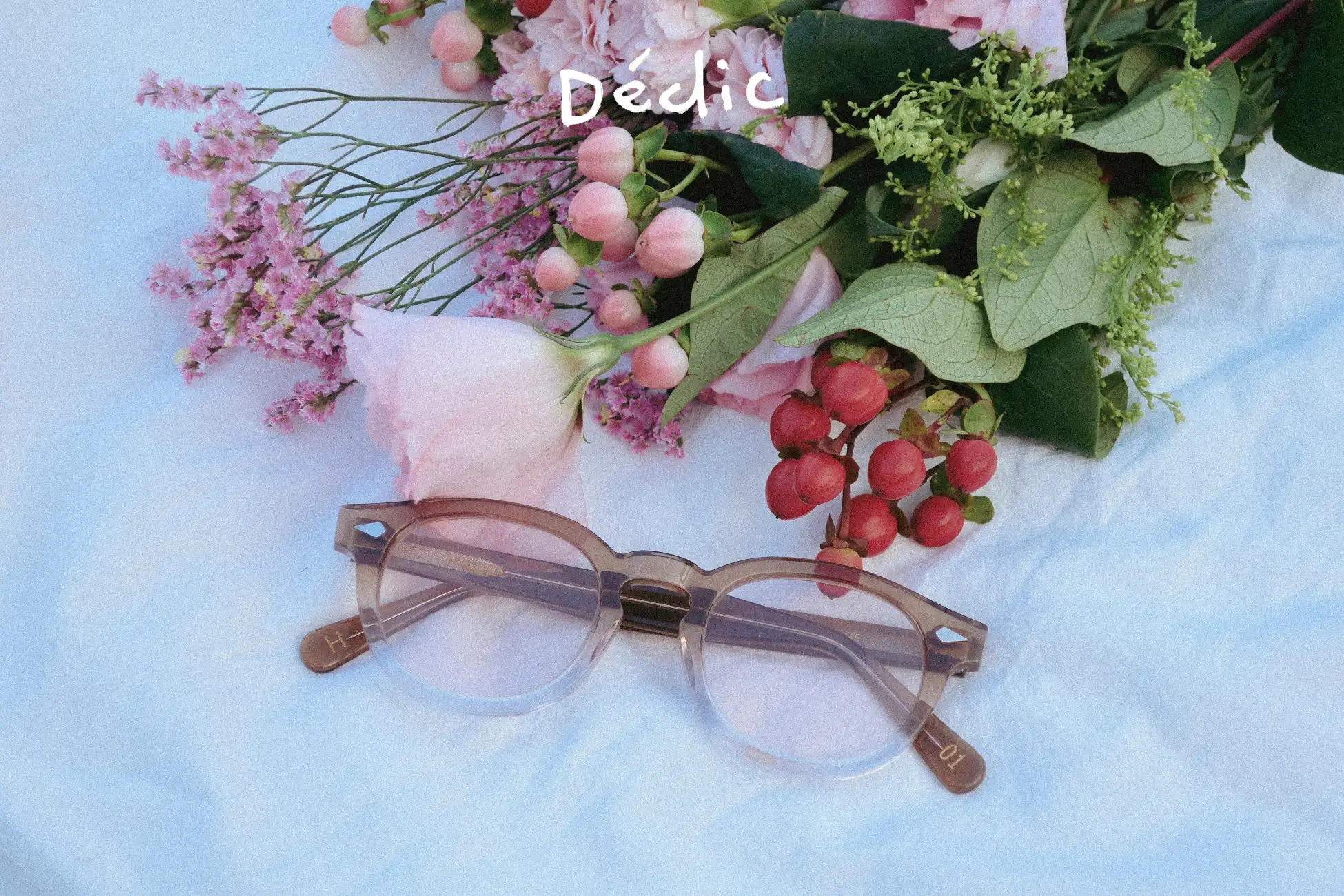 今回の別注モデルでは、「デクリック」1周年を象徴するテーマカラーの“ピンク”をレンズに採用。透明感のあるブラウンフレームと組み合わせることで、クラシックな佇まいにモダンな軽やかさを加えたデザインに仕上がりました。デイリーに取り入れやすく、スタイリングに遊び心を添える限定アイテムです。