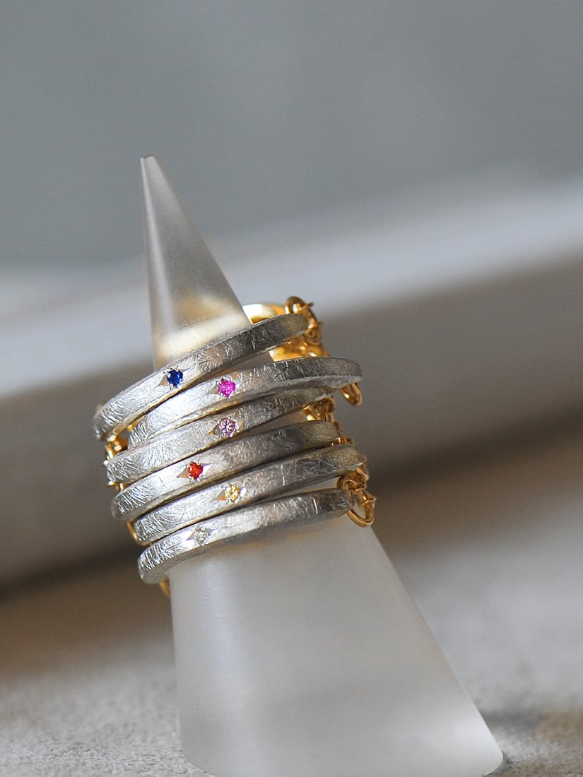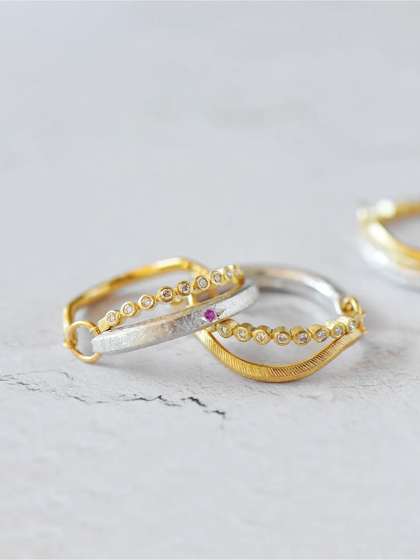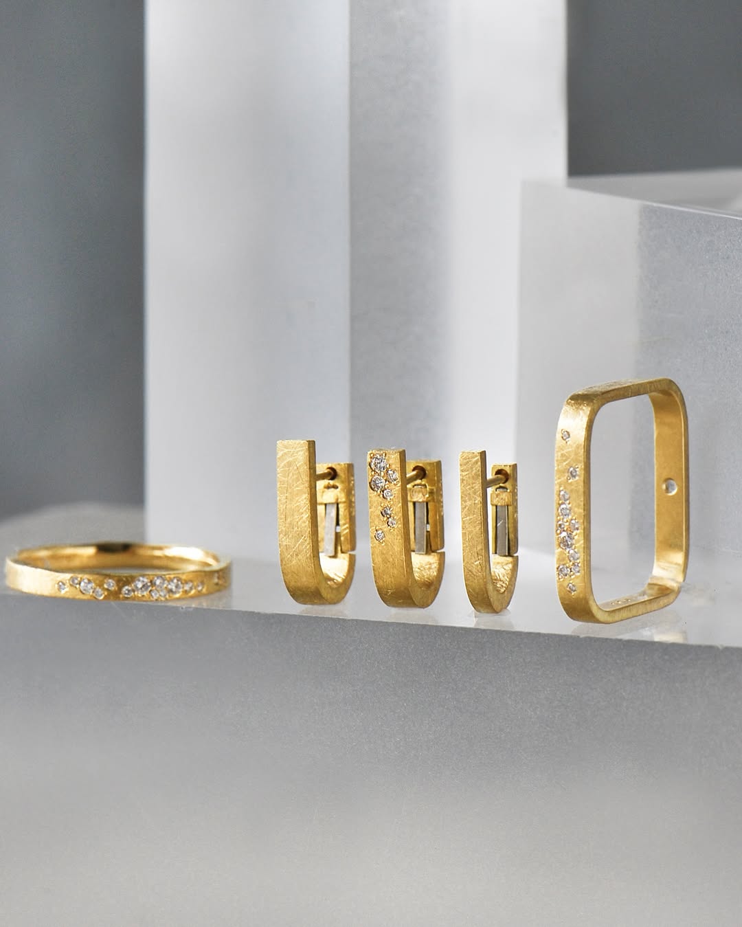 それ以前にはアクリルや真鍮など多彩な素材でジュエリーを制作してきたが、高価なゴールドやダイヤモンドは当初扱えなかった。それでも「いつかは長く愛されるジュエリーを手掛けたい」という願いを抱き続けてきたという。