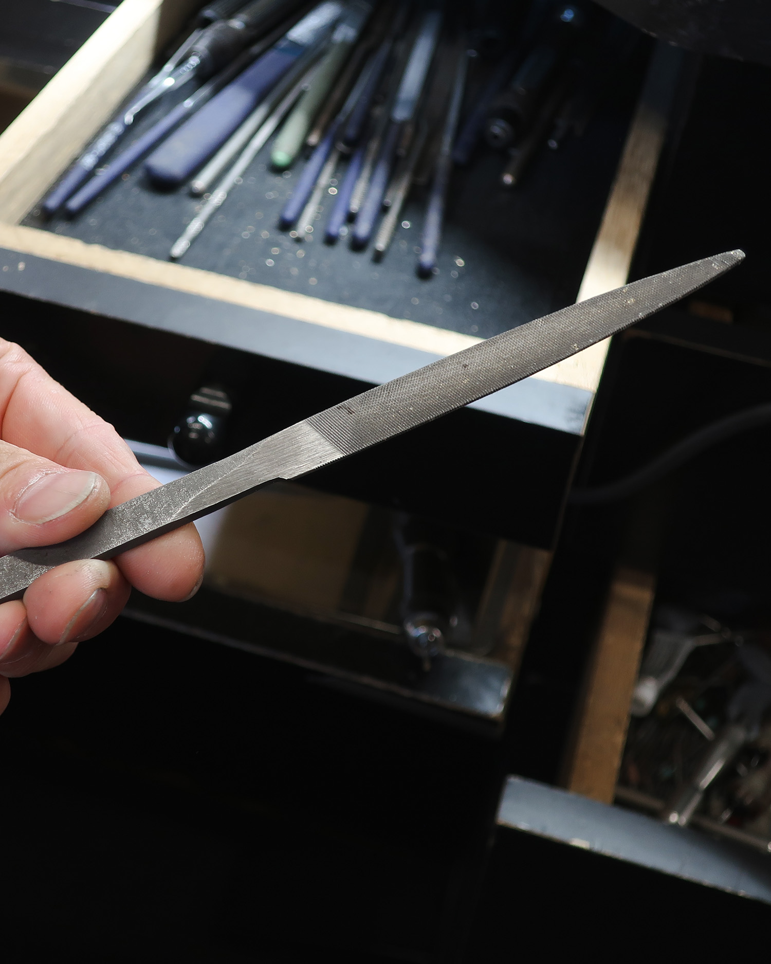 お気に入りの道具は、サクサク削れるやすり。金属が削れる触感が気持ち良いそうだ。