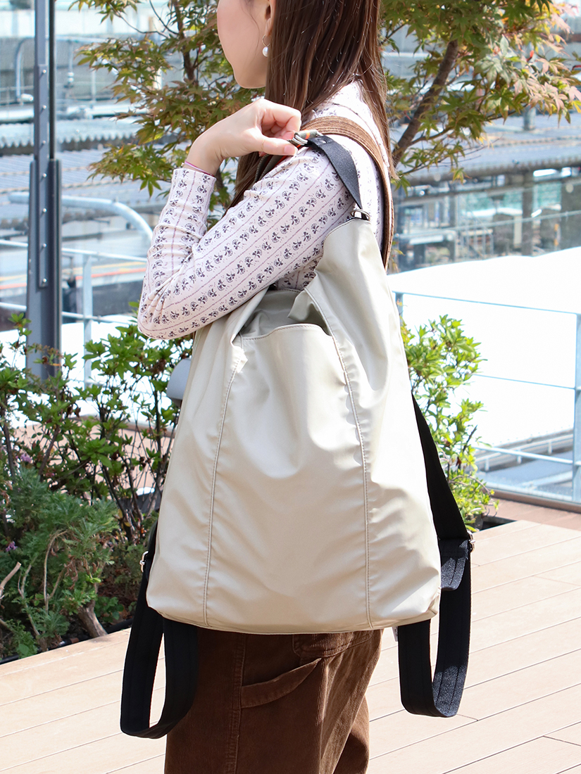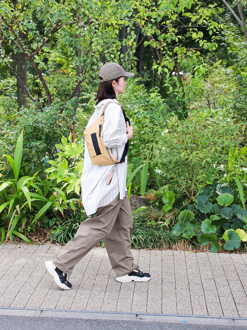 肩にサッと掛けられるので、すぐに動き出せるのも嬉しい。小さすぎないサイズ感で、ペットボトルやタオルも余裕で収まり、荷物が増えても安心!動き回る一日を快適にサポートしてくれます。