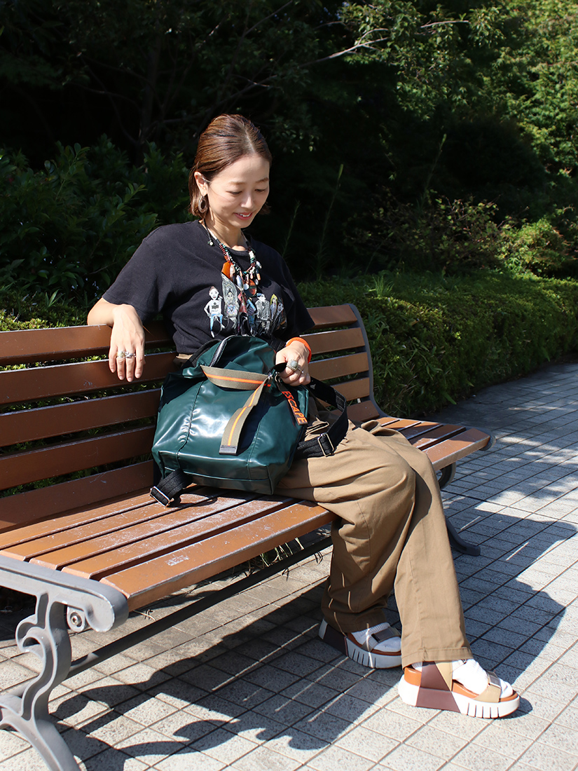 PCなど仕事の荷物も、子どもの持ち物もすっきり収まる「CALVI」は、毎日に欠かせないアイテム。大容量なのにすっきりとしたシルエットは、オフィススタイルにも自然に馴染むデザインがお気に入り。
